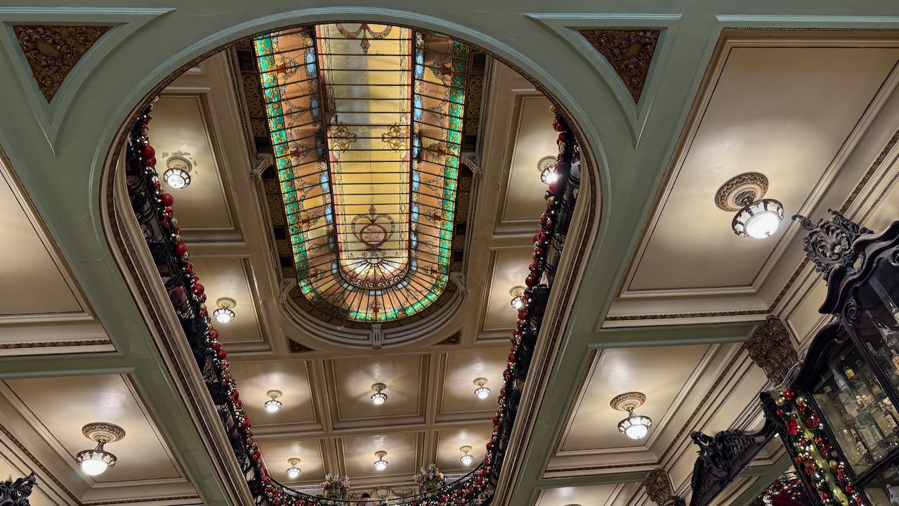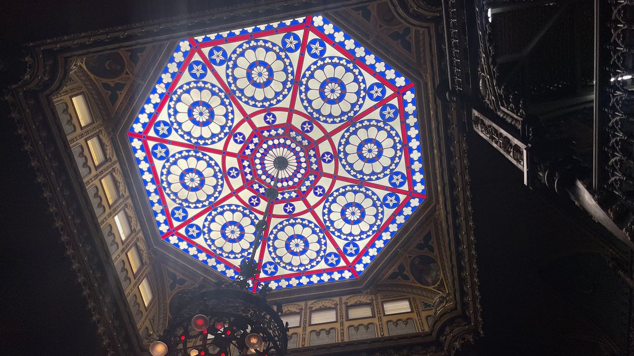 Innen überwältigend, ein Jugendstiltraum mit Kristallspiegeln und Palisanderholzmöbeln.