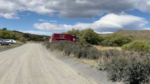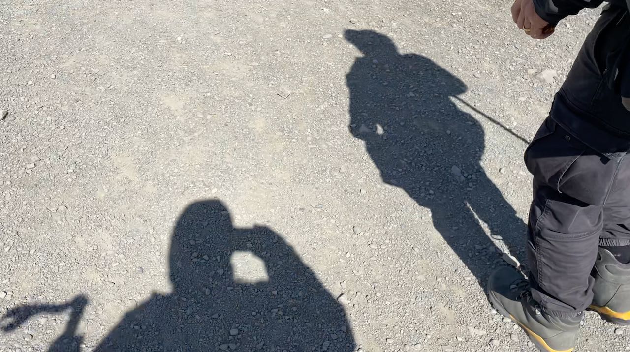 In der Ferne glimmt ein roter Hoffnungsschimmer, wir schleppen uns die langweilige Schotterstrasse entlang