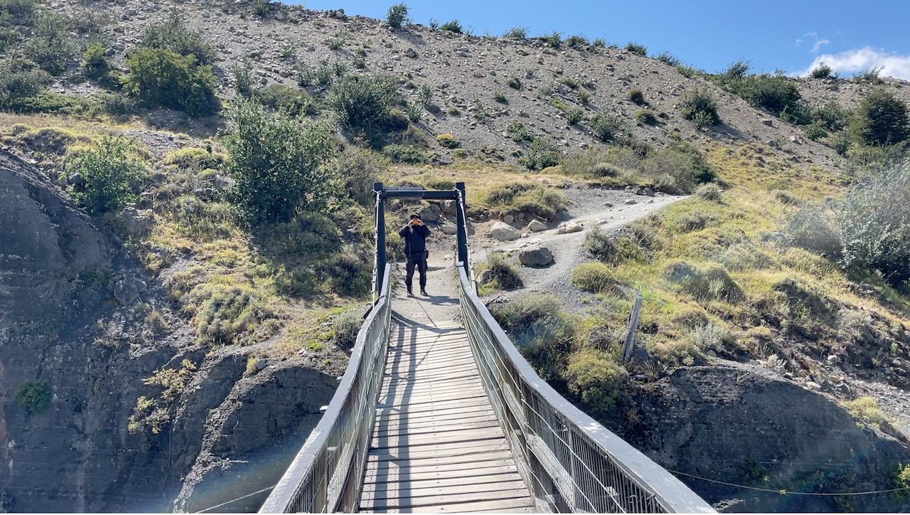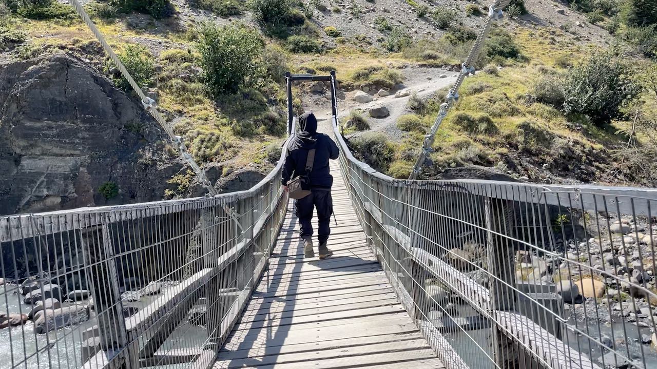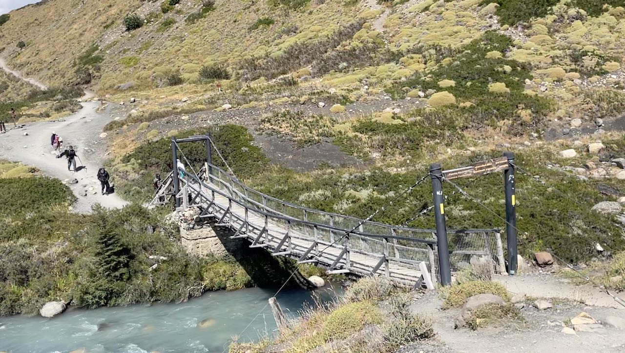 Unter der Hängebrücke sprudelt das milchige Wasser des Rio Ascencio