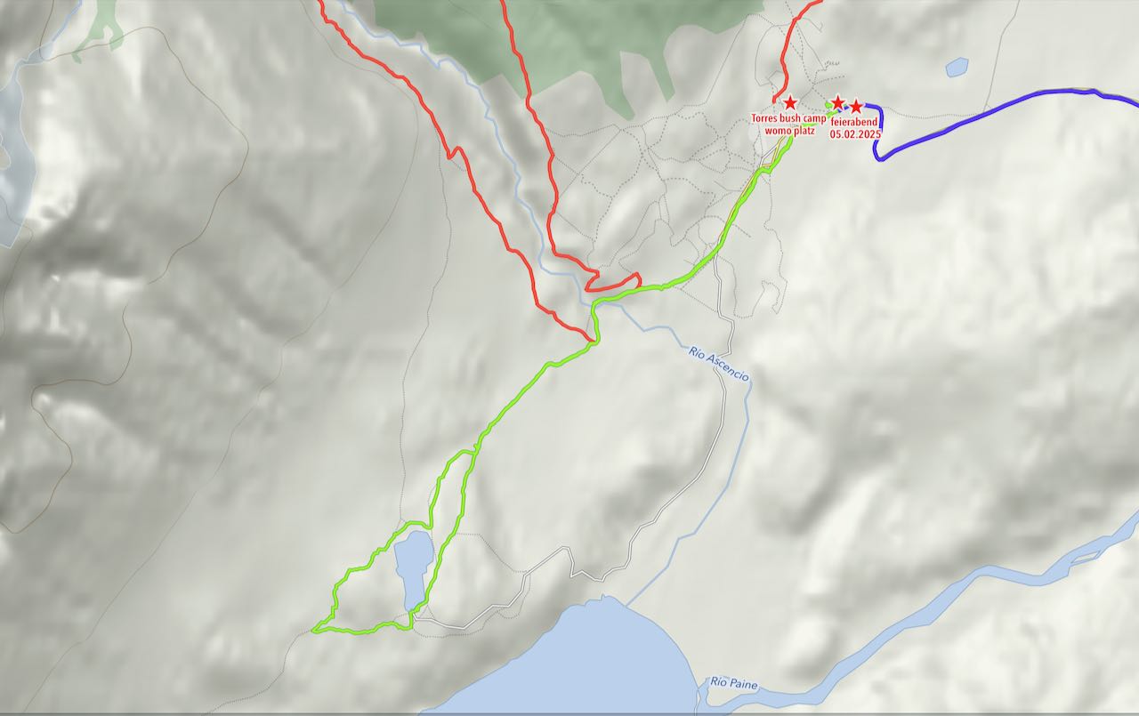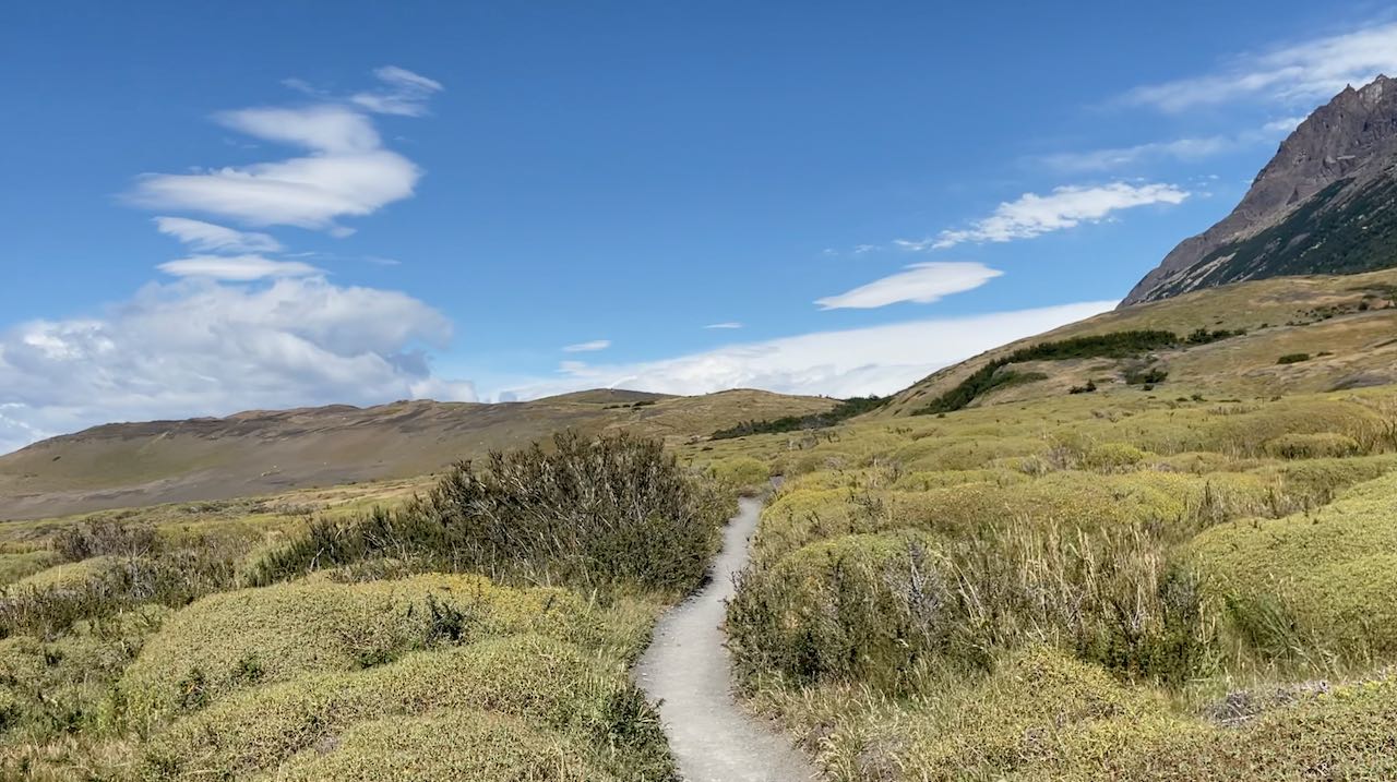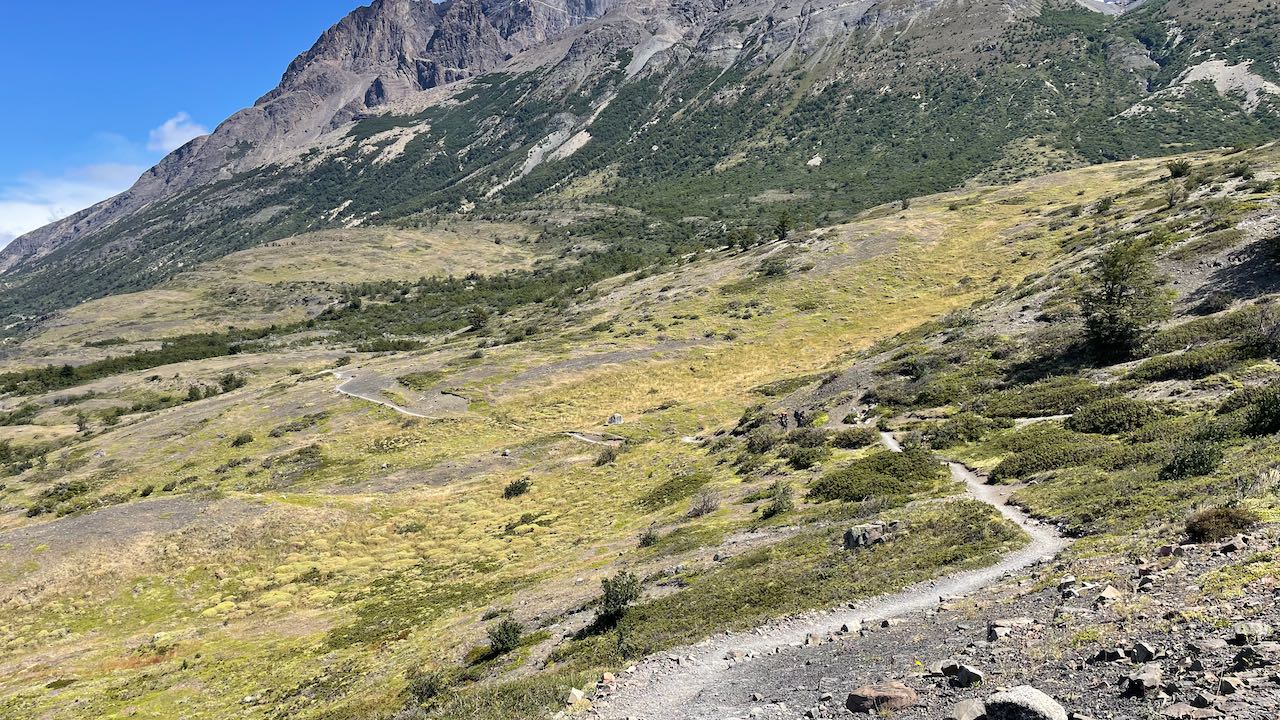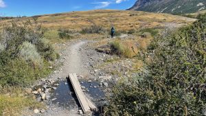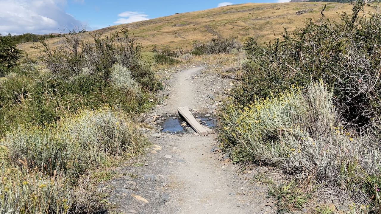 Bald teilt sich der Weg. Die meisten biegen ab, auf den T2 Wanderweg zum Lago Torres. Das berühmteste Foto vom Nationalpark stammt von dort, der See mit den Felstürmen dahinter und dies möglichst im Morgenrot.