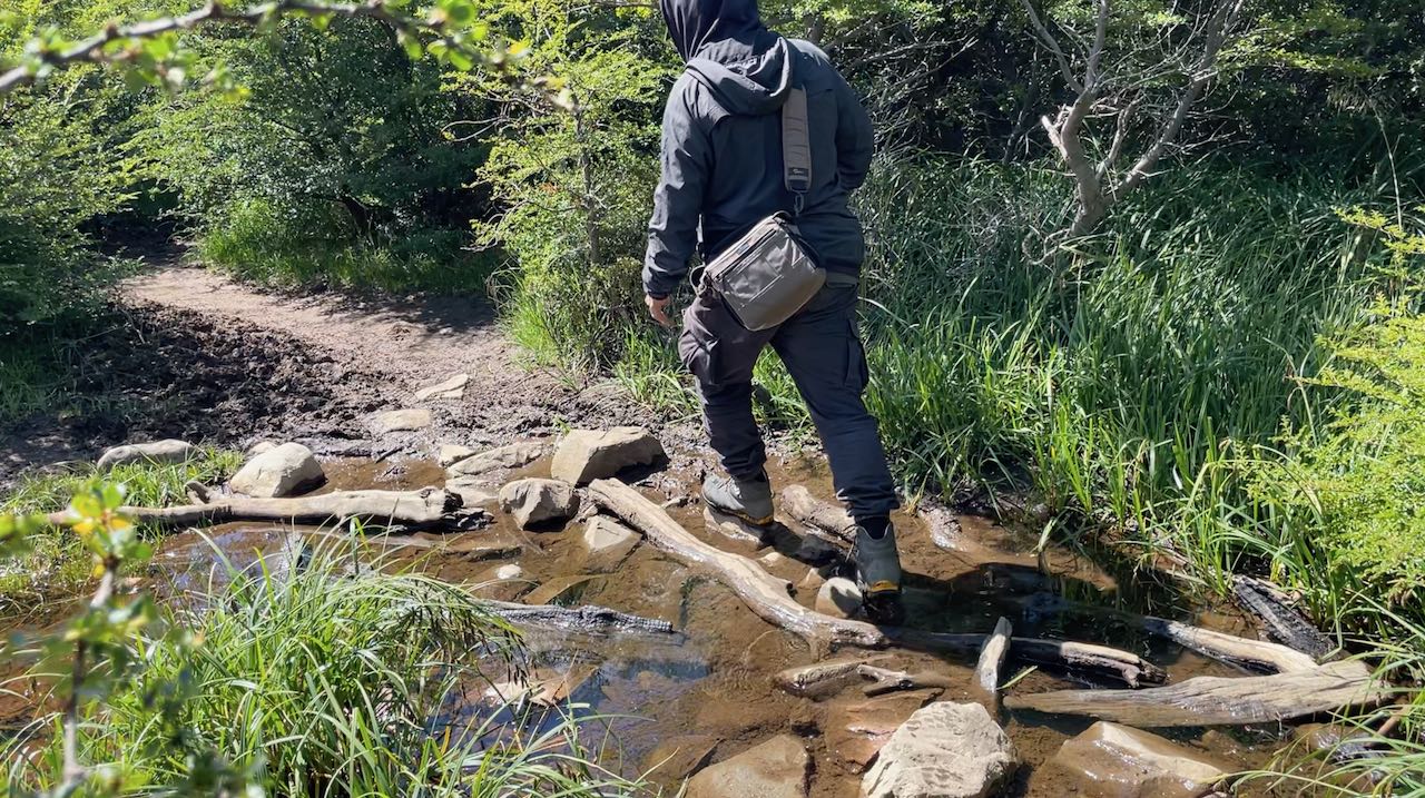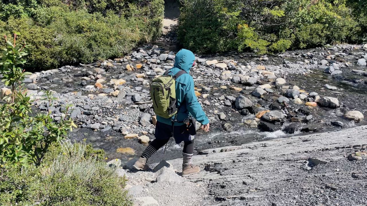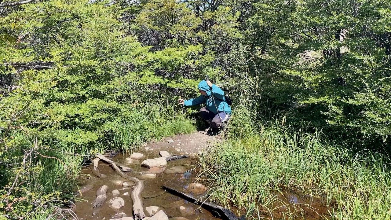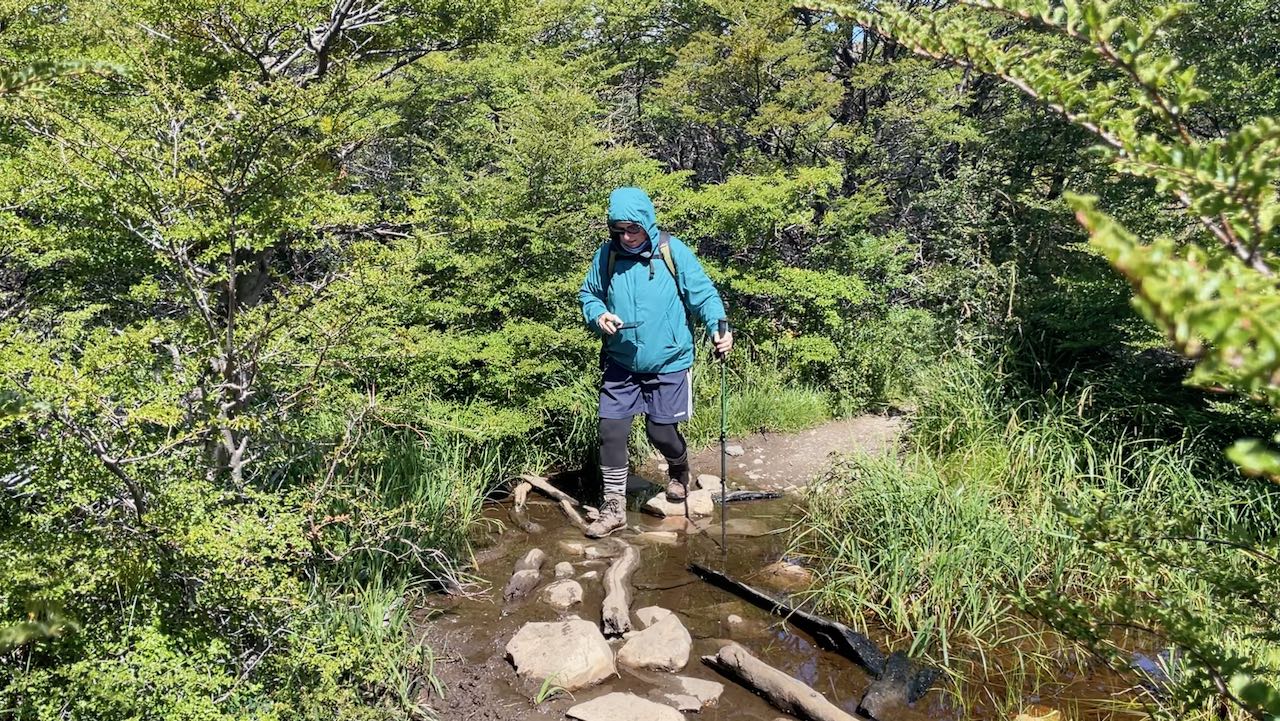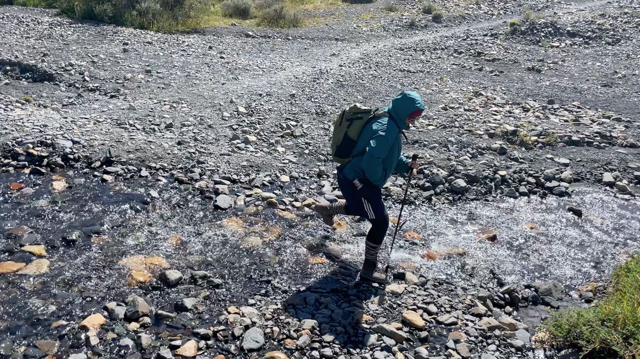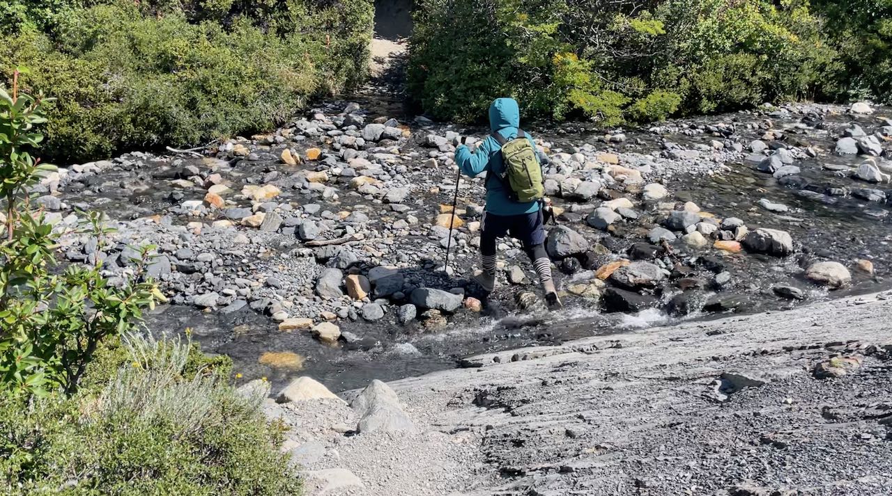 Wieder muss ein Wasserlauf überquert werden. Die Steine wackeln, es wird ein Balanceakt.