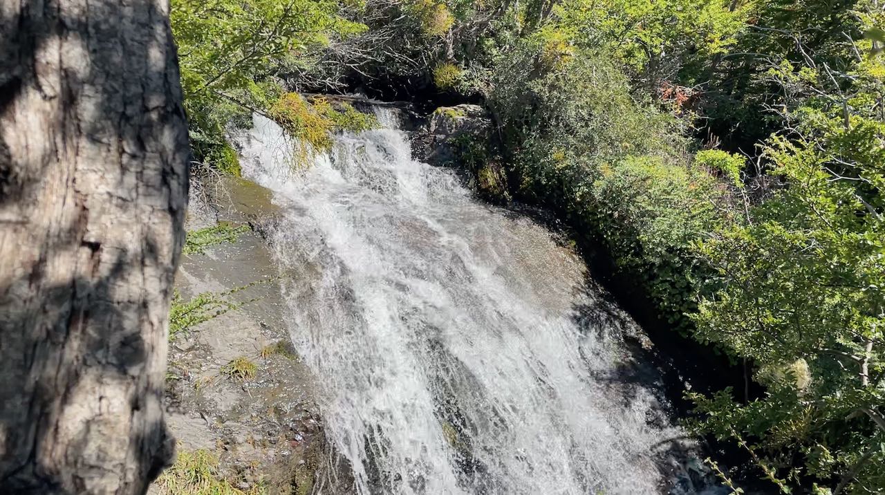 Ein rauschender Wasserfall zwischen den Bäumen, unser Weg führt weiter hinauf