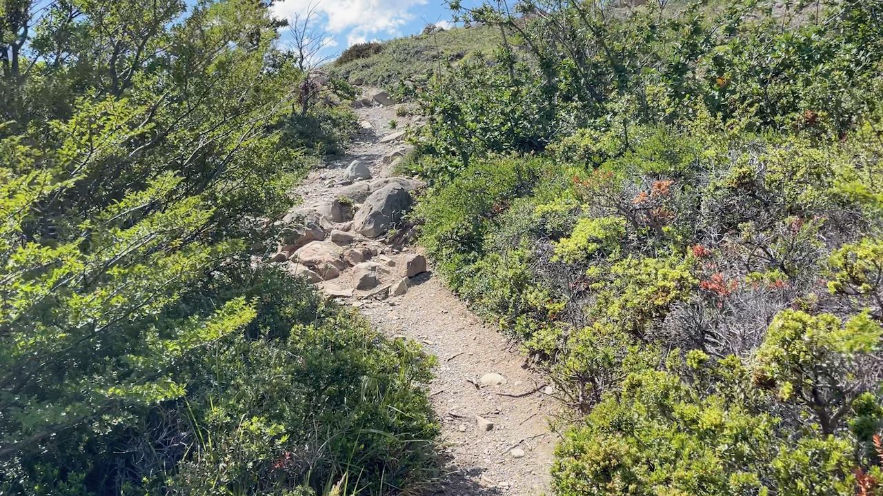 Brücken jeglicher Art sind zu überqueren. Wir wandern mitten durch eine Polsterlandschaft. Wirrwarrkraut so weit das Auge reicht