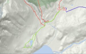 Dann gilt es, wieder auf den Hauptweg zu gelangen. Erstmal hoch zu einem Geröllfeld. Dort irren wir ein bißchen herum, bis wir den Pfad wiederfinden.