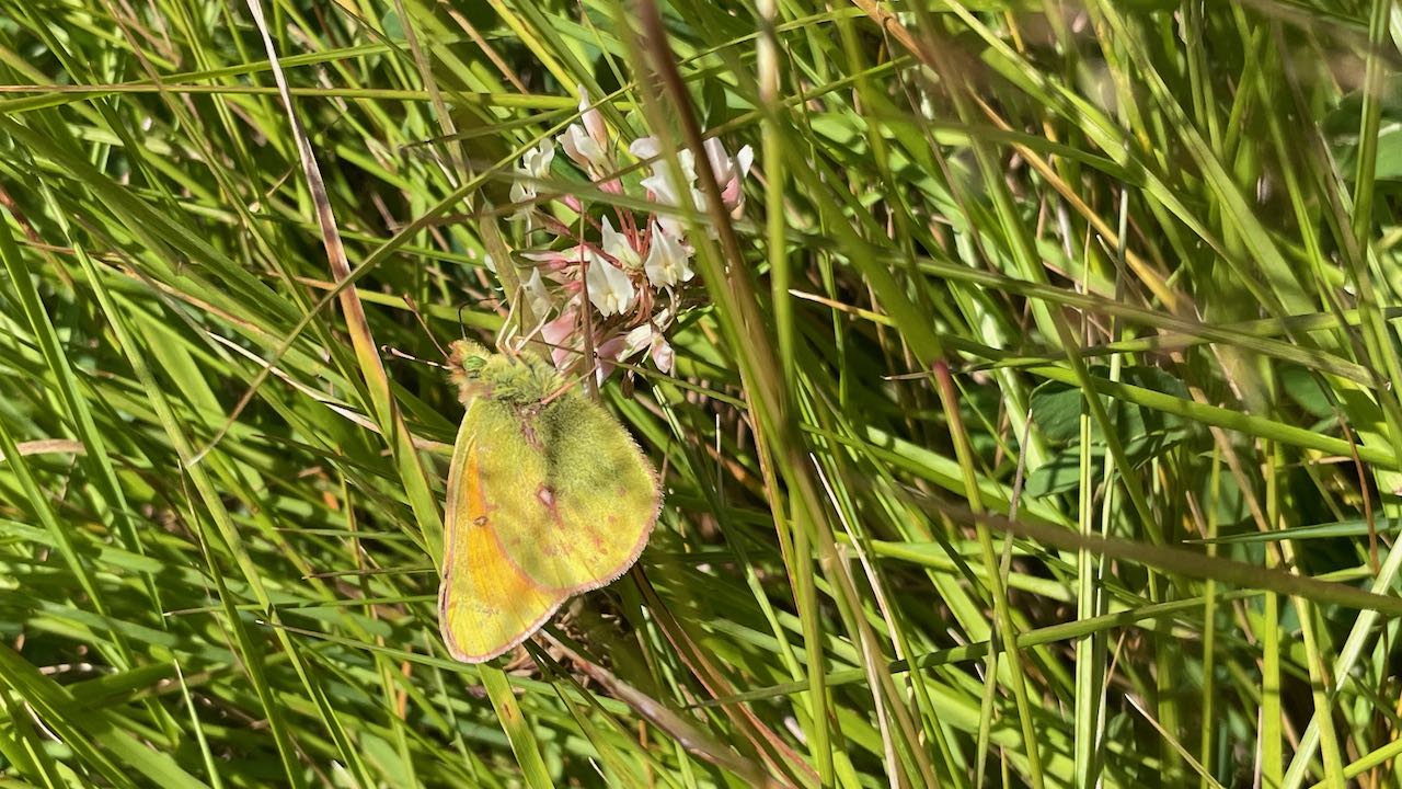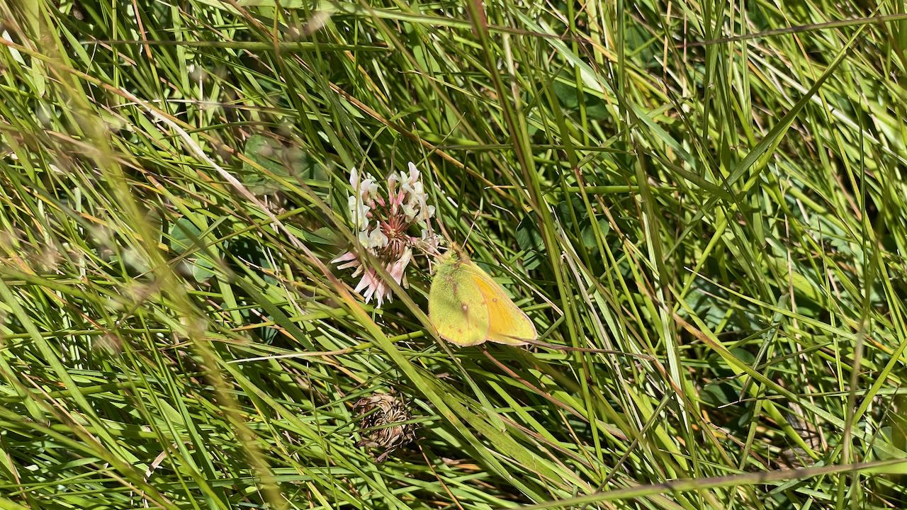 Schmetterlingsschwärme in wunderschönen Farben trudeln zwischen den hohen Gräsern