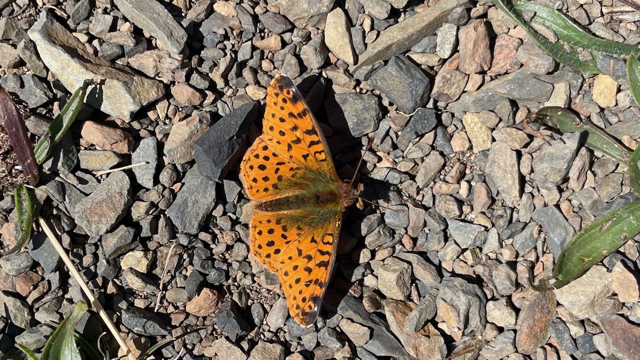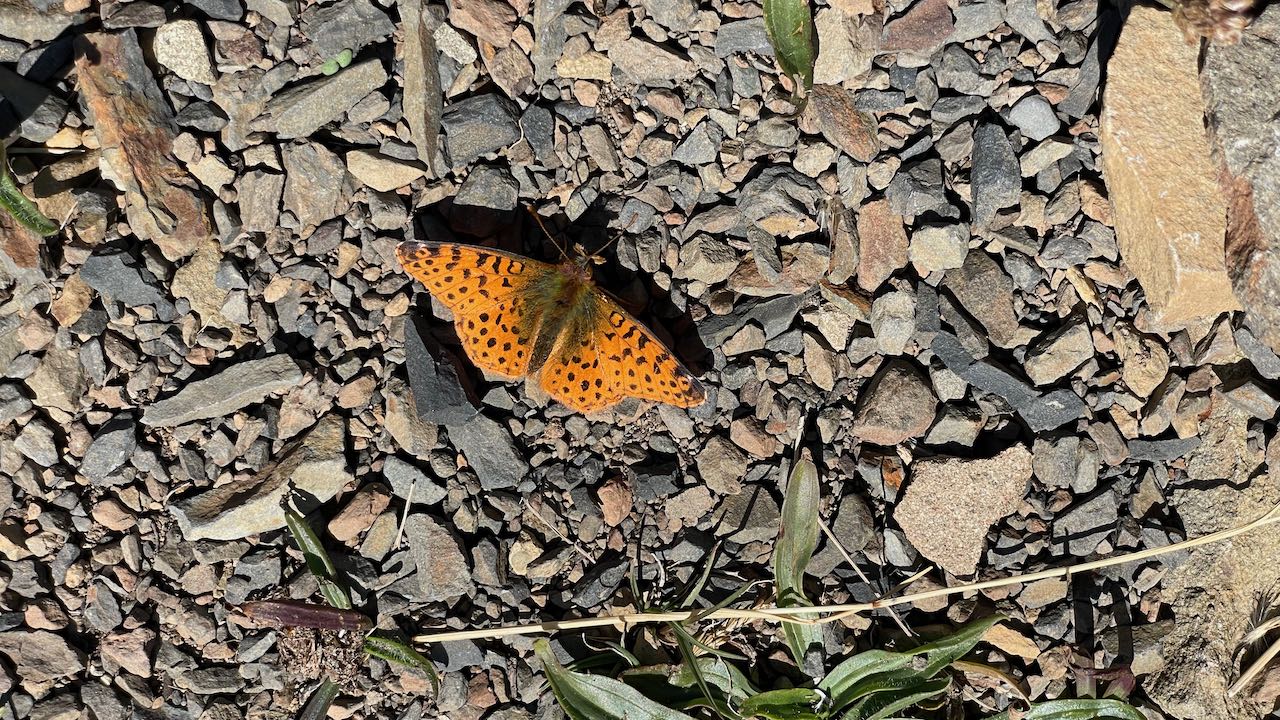 Nur ein paar Meter höher und schon ist alles ganz anders. Unter unseren Sohlen knirschen Schieferplättchen. Hier oben wachsen keine Wuschelpolster mehr. Kräutlein und Moose ducken sich flach an den Boden und zwischen die Steine.