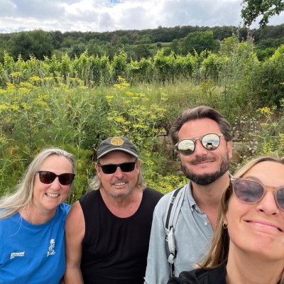Ein Wanderausflug in die Pfälzer Weinberge. Alle vier quetschen sich in den Fiat 500 e und sausen los. Wow! Das geht ab, das Miniauto!