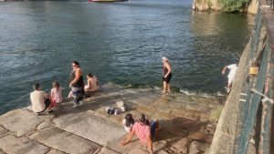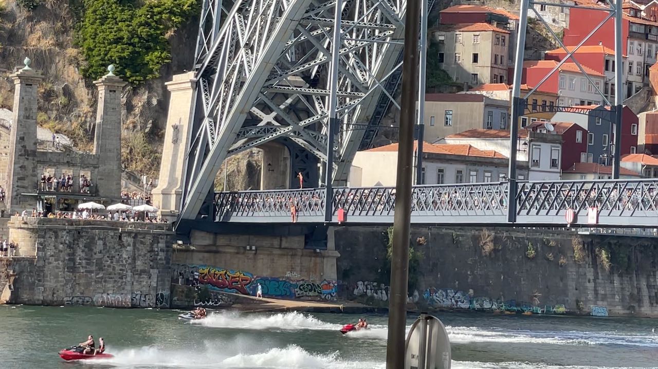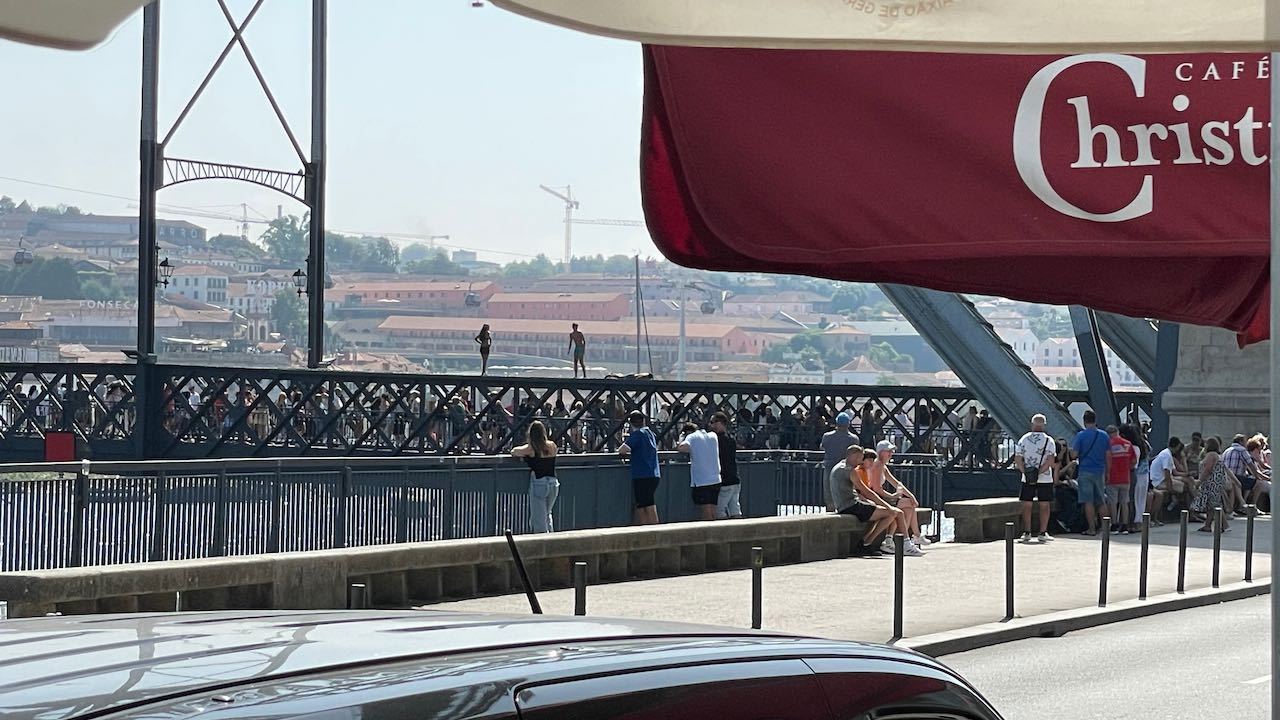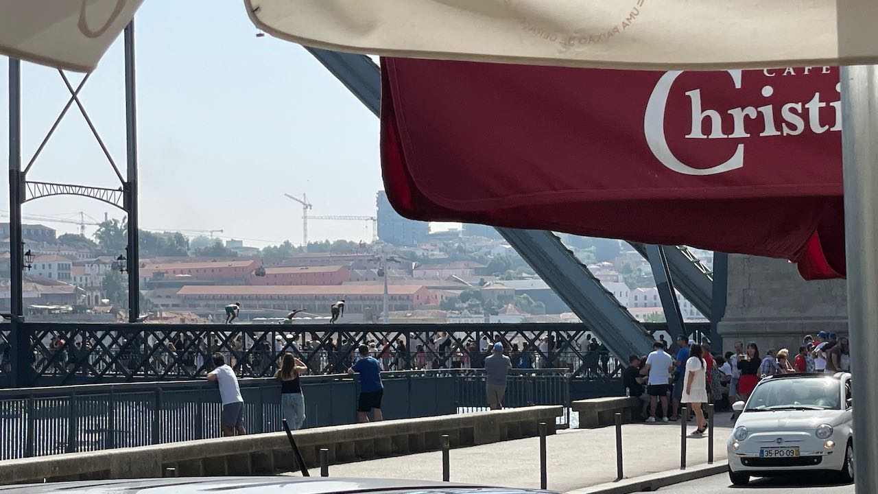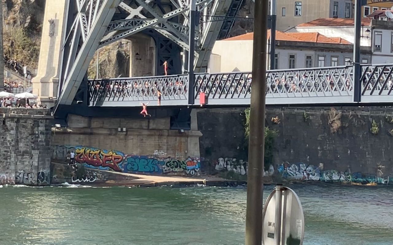 und beobachten von hier aus die Mädels und Jungs, die erst lässig auf dem Brückengeländer rumlungern und dann ihre (über)mutigen Sprünge in den Douro machen.
