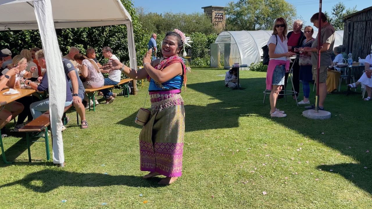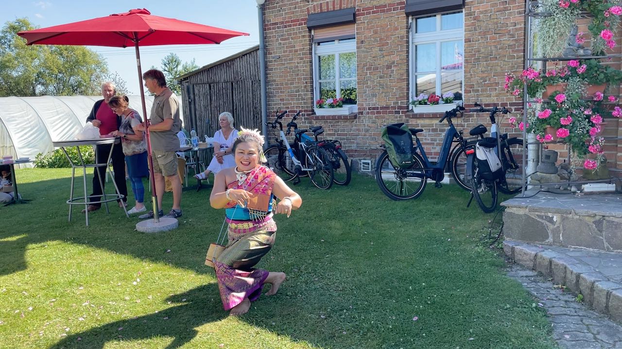 Grandioses thailändisches Essen wird geboten. Während wir genießen, unterhält uns eine wunderschöne Dame mit traditionellem Tanz.
