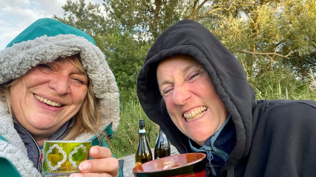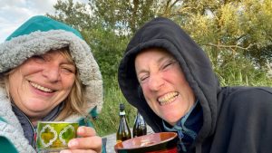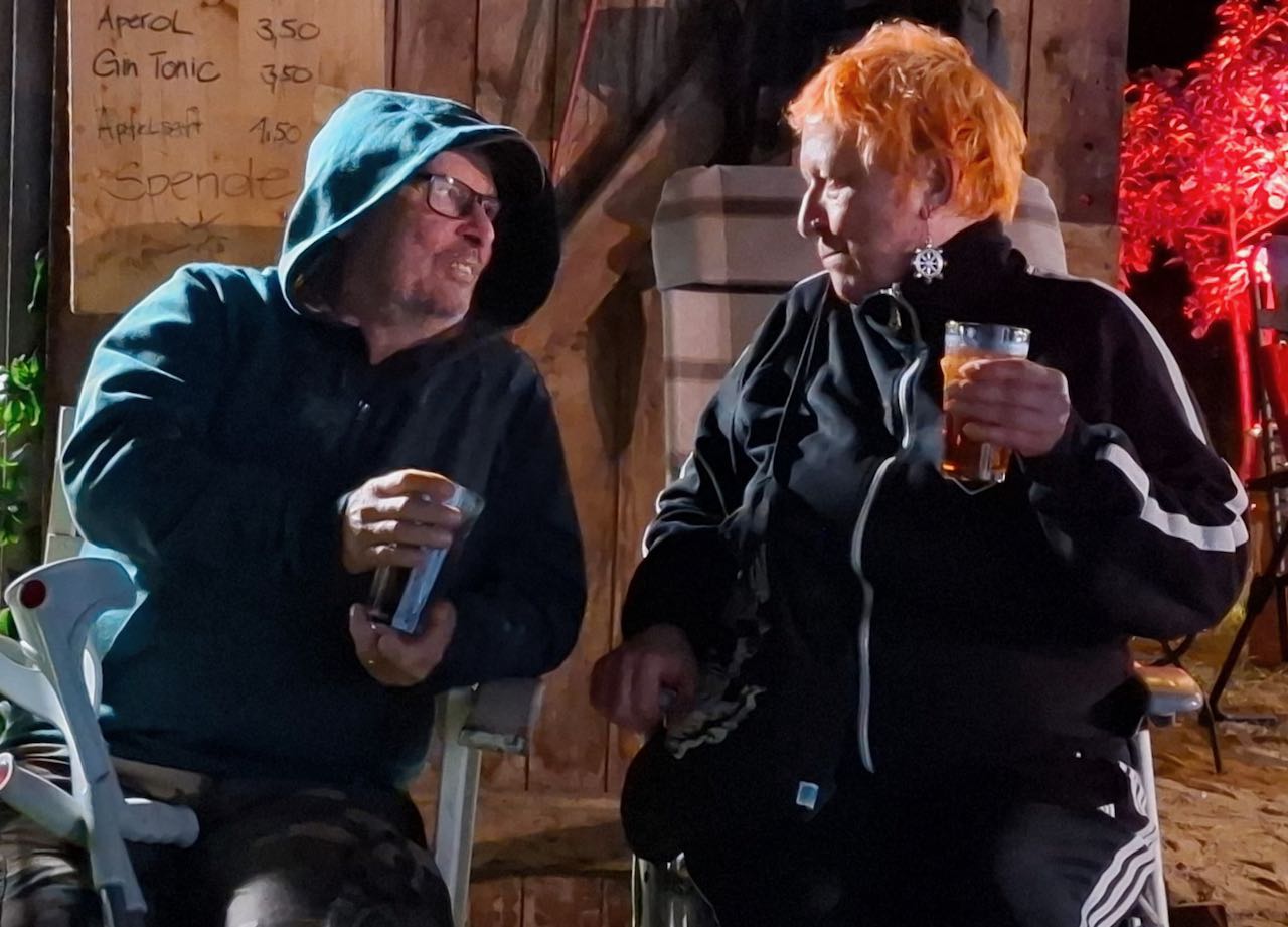Ingrid und ich harren lange aus, es gibt doch so viel zu erzählen….In warme Jacken gehüllt stolpern wir schließlich Arm in Arm zurück zu den Autos.