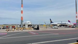 Mit Bus und Bahn zum BER. In diesem neu gebauten, „modernen“ Flughafen erfolgt der Terminalwechsel zu Fuß. Weite Wege im Freien führen von Terminal1 zum Terminal 2, nicht schön für Menschen mit Gehschwierigkeiten.