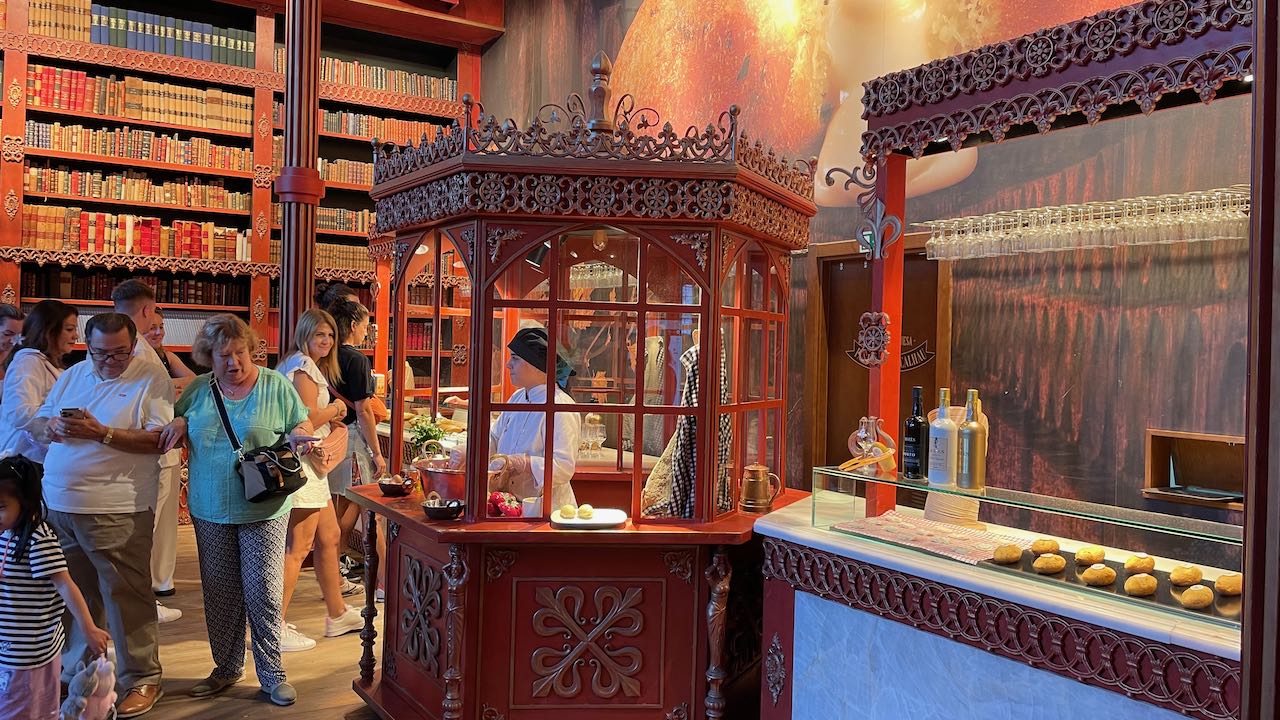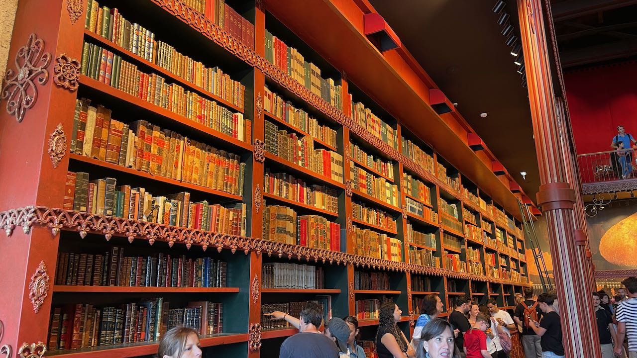 Dort gibt es alte Bücher bis zur Decke und Stockfischbällchen zu Gesang und Orgelmusik
