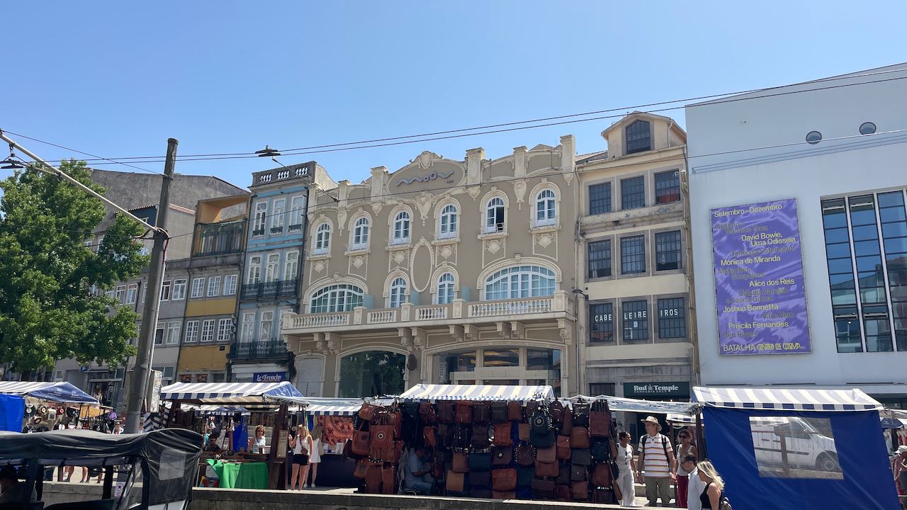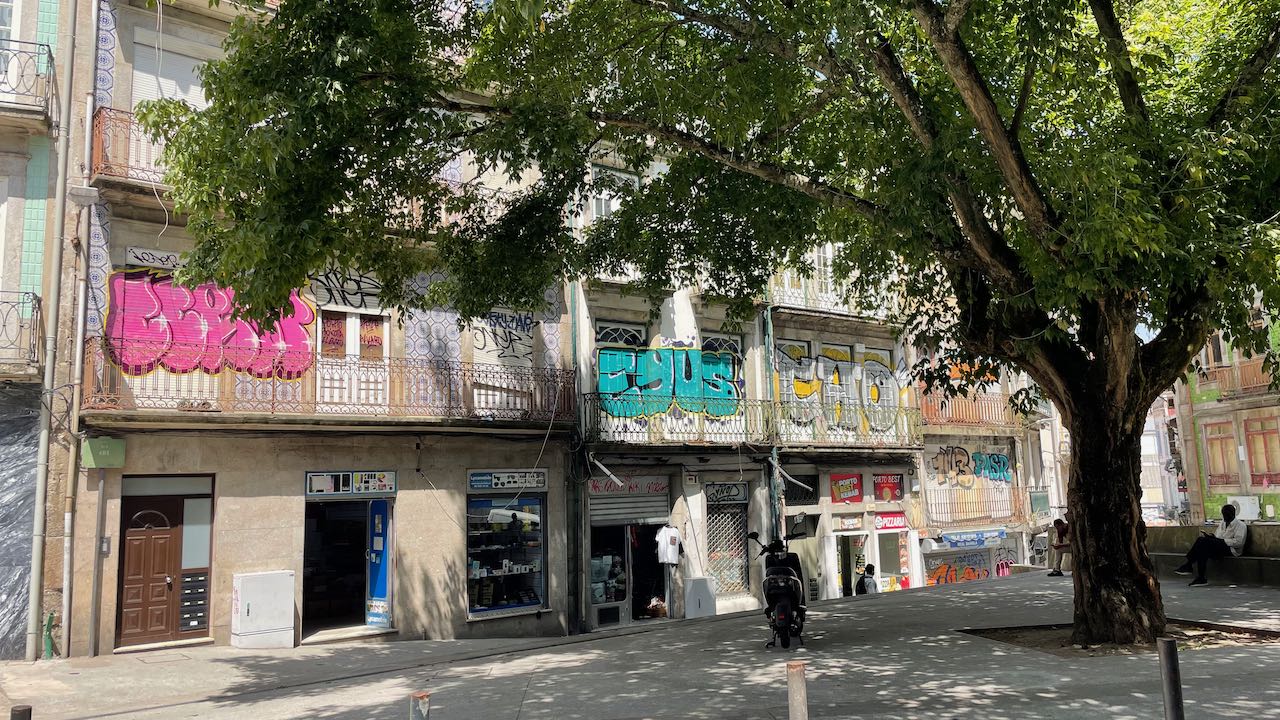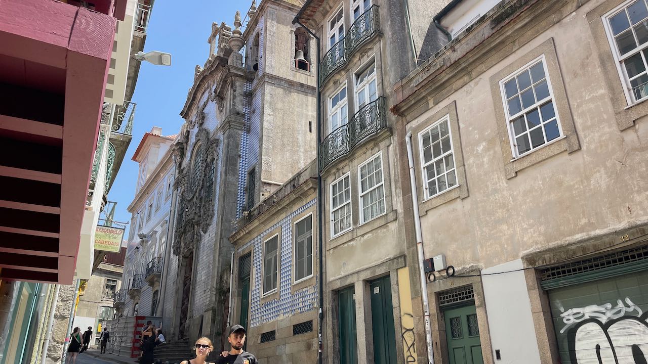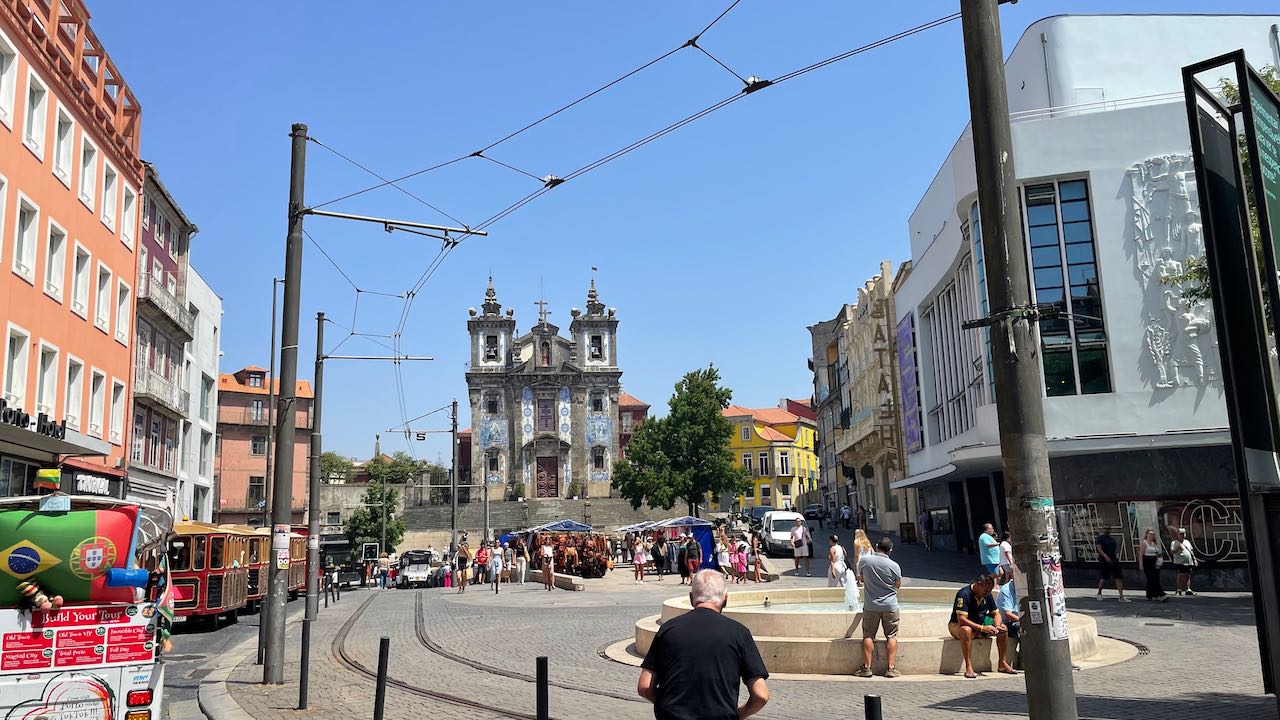 Die Gassen münden auf die Praca de Batalha. Auf den Stufen der Kirche Santo Ildefonso mit ihren blauen Kacheln haben wir früher lange gesessen und dem bunten Treiben auf dem Platz zugesehen. Ein hoher Bauzaun verhindert das jetzt.