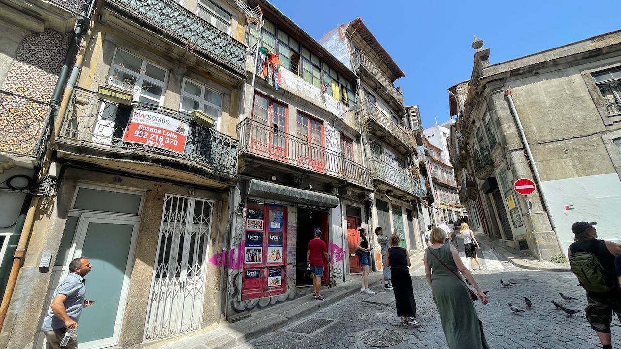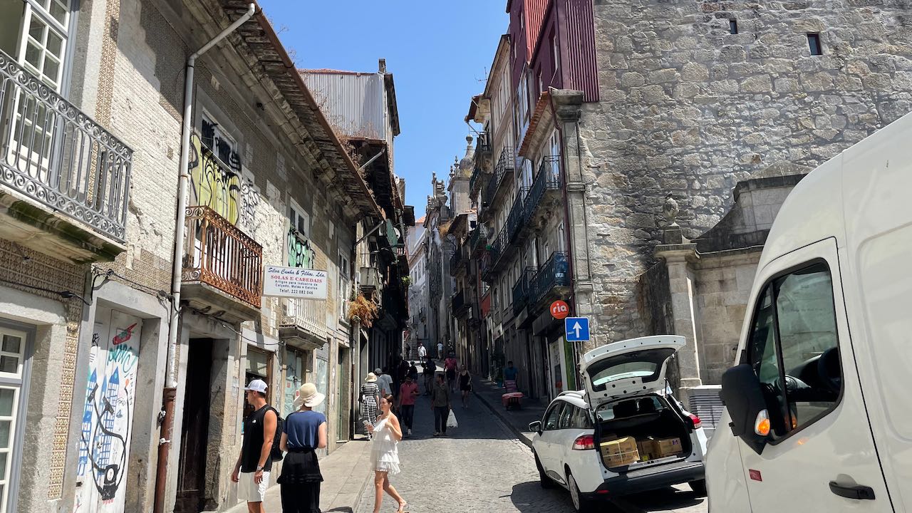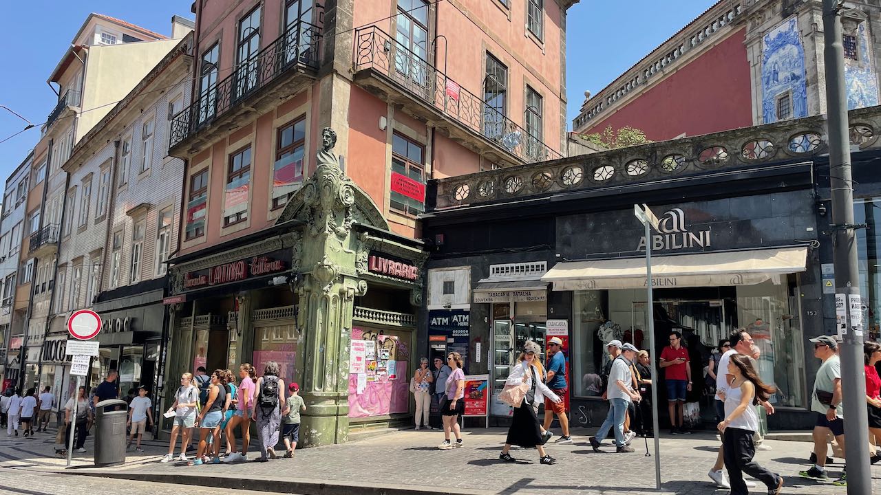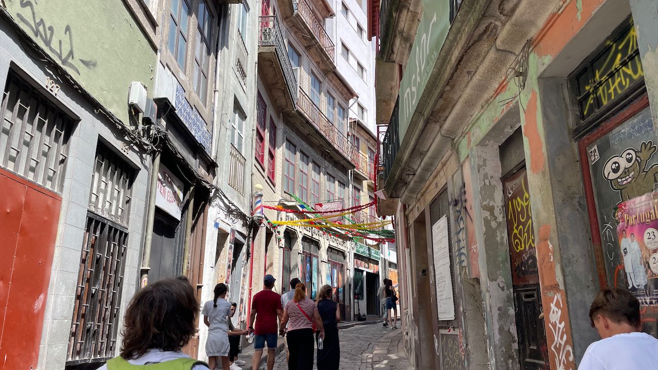 Die Gassen münden auf die Praca de Batalha. Auf den Stufen der Kirche Santo Ildefonso mit ihren blauen Kacheln haben wir früher lange gesessen und dem bunten Treiben auf dem Platz zugesehen. Ein hoher Bauzaun verhindert das jetzt.