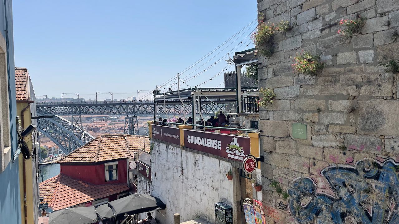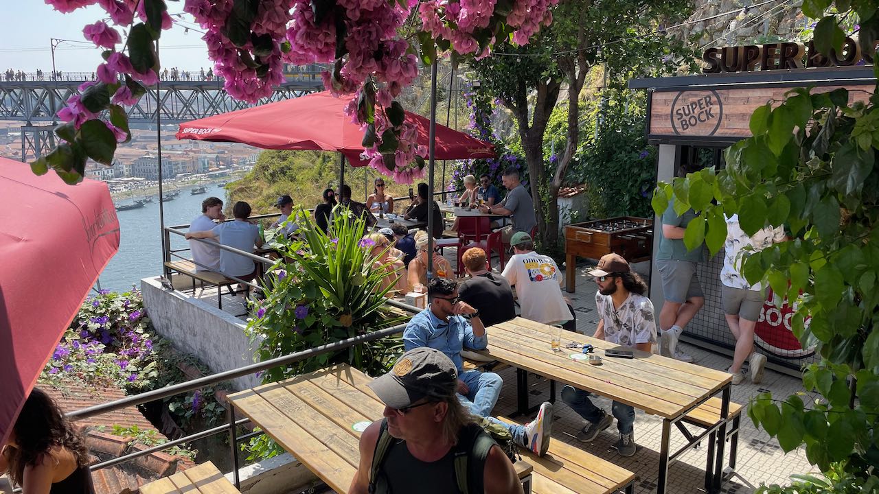 Gegenüber vom Apartment sitzt man bei Dom Ginja wunderbar am Douro