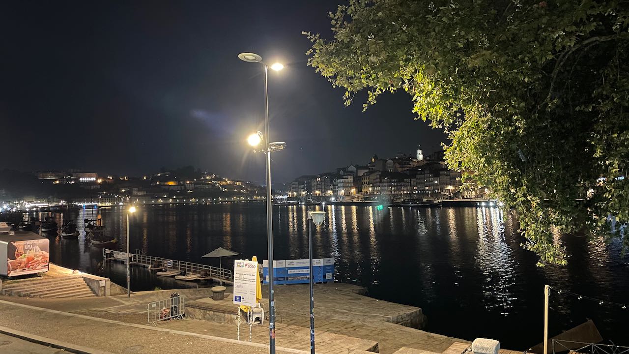Abends sitzen wir an der Mole. Möwen schwärmen aus und lachen vor sich hin. Von Afurada kommen zum Sonnenuntergang viele Boote herauf, drüben in Porto gehen die Lichter an. Dom Luis strahlt im Scheinwerferlicht