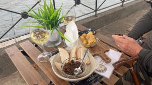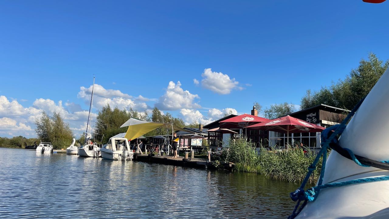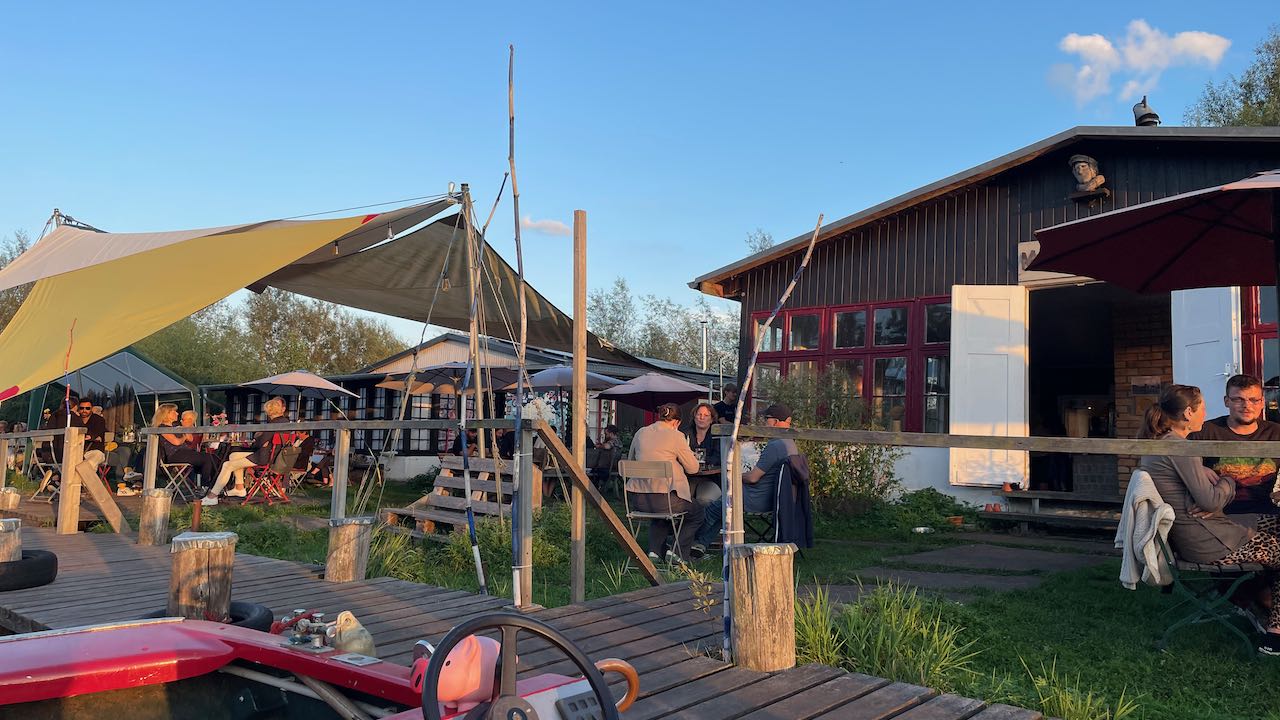 Zum Glück hat Jutta einen Tisch reserviert, wir sitzen direkt am Wasser, der Laden brummt.