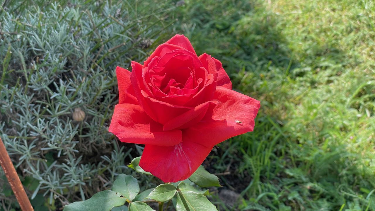 Im Garten sammeln die Insekten eifrig Nektar und Pollen. Othello, die Rose, die wir aus unserem Kreuzberger Garten nach Mecklenburg verpflanzt haben, öffnet seine einzige, betörend duftende Blüte