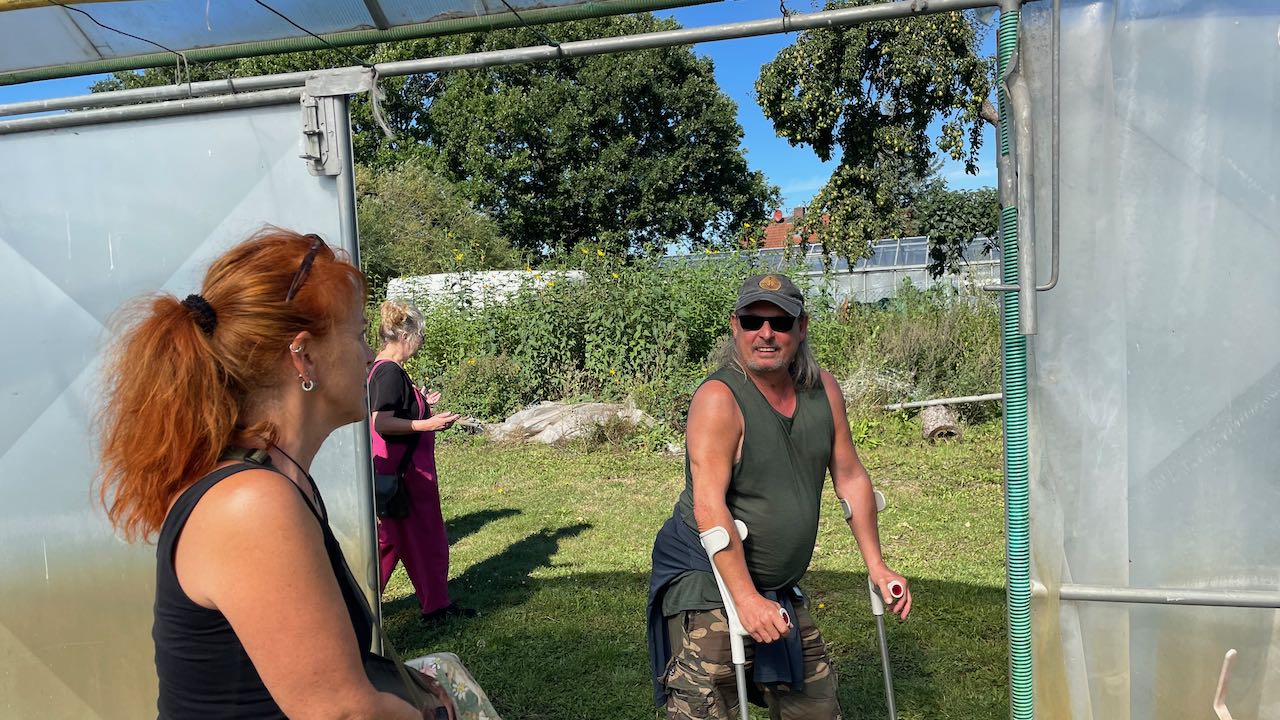 Unser Vermieter hat Martin einen Gehstock mitgebracht, aber auch damit ist unser Radius sehr begrenzt, macht nichts. Hier ist es schön!