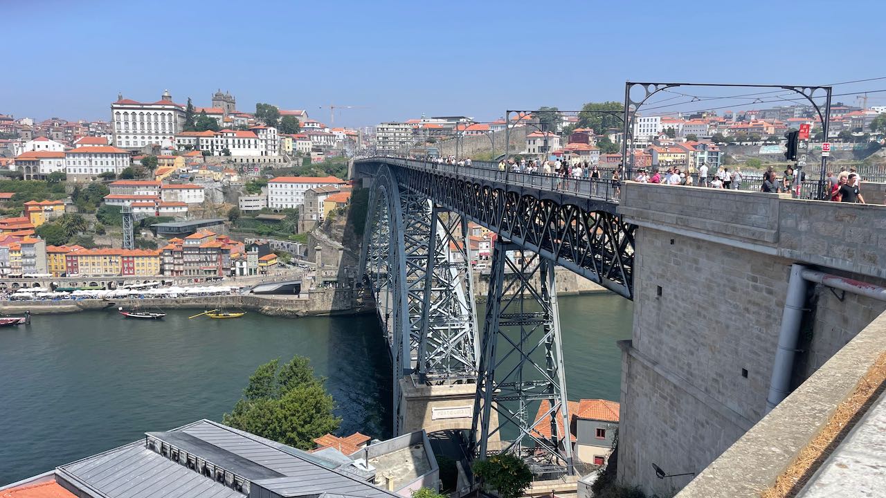 dann wandern wir zur Dom Luis 1 Brücke. Seit 2004 ist sie für Fußgänger und Strassenbahn reserviert, noch nie sind wir rübergelaufen, heute holen wir das nach.