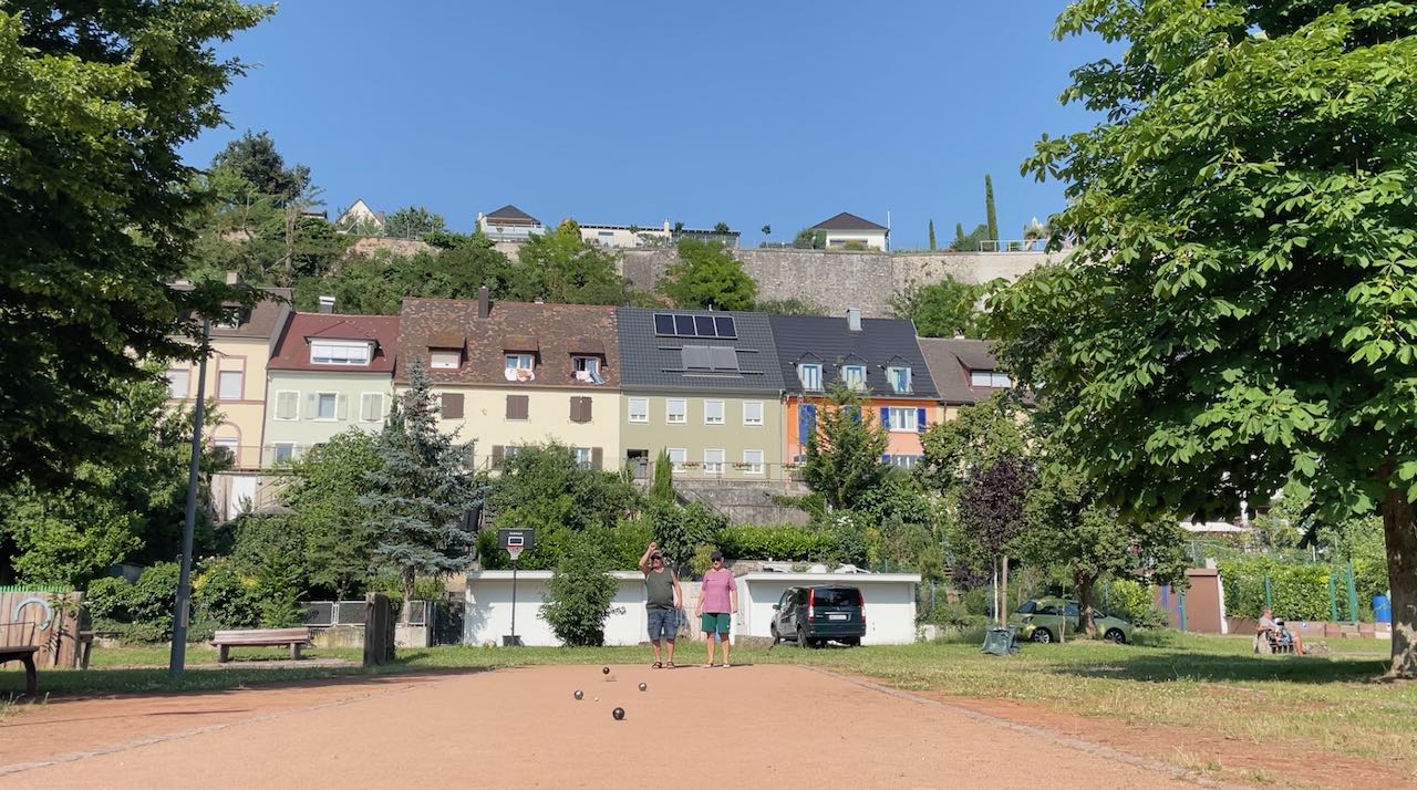 Spätnachmittags schnappen wir die Bouletaschen, gegenüber ist ein schöner Bouleplatz.