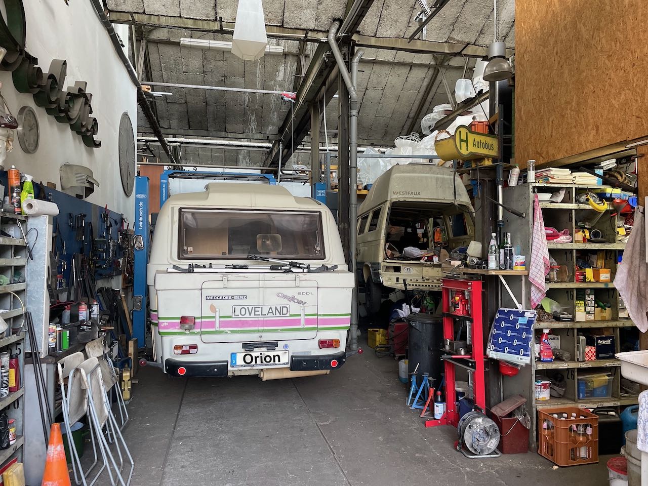 Der Orion steht wieder vor der Werkstatt. Irgendwas ist mit der Bremsanlage nicht 100% in Ordnung.