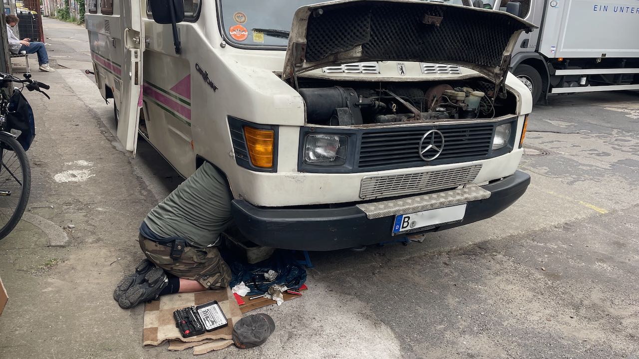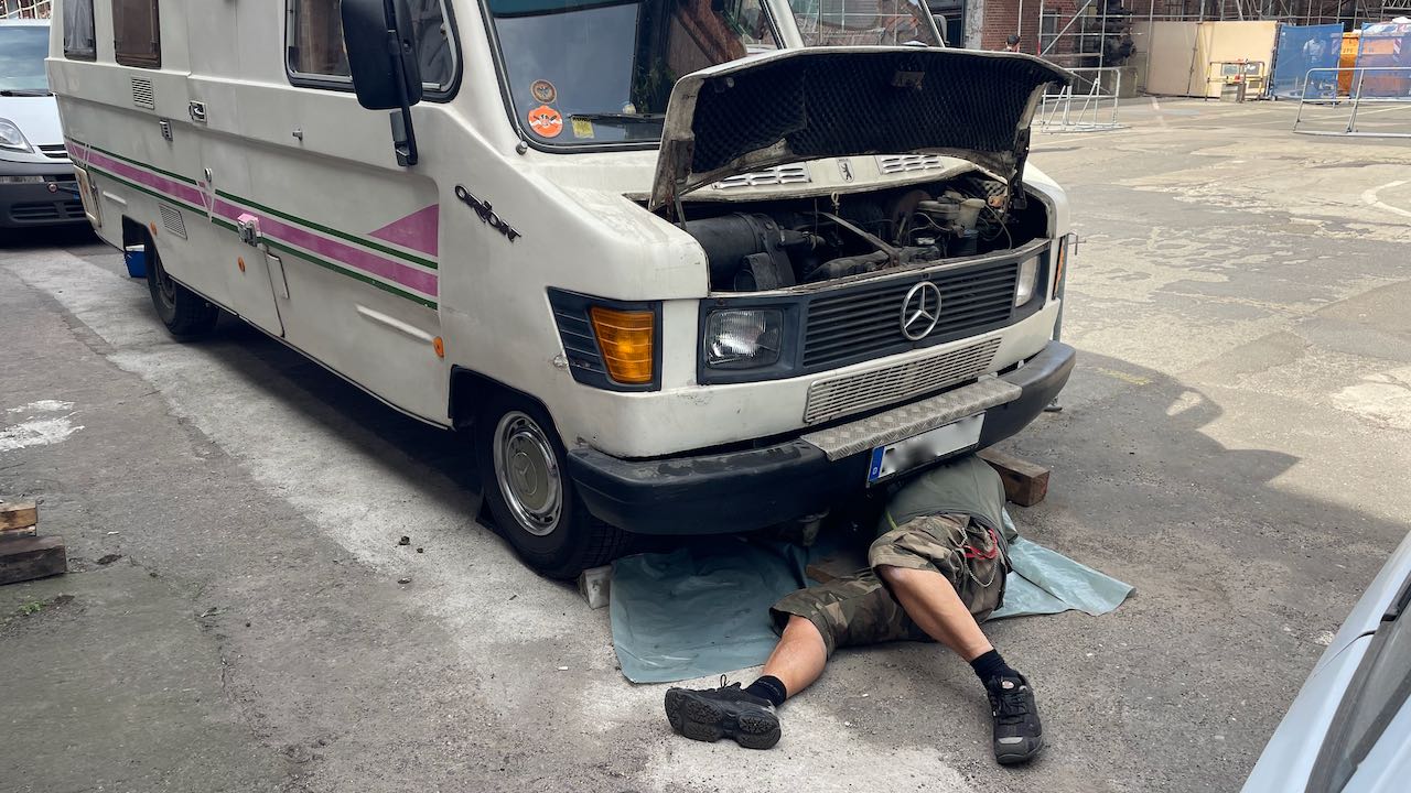 Wir wollen am nächsten Tag weiter, aber der Orion muckt rum, will nicht anspringen.