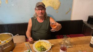 Abends sitzen wir vor unserem Stammlokal, ein kräftiger Wind fegt durch die Strassen, uns erinnert es an Patagonien