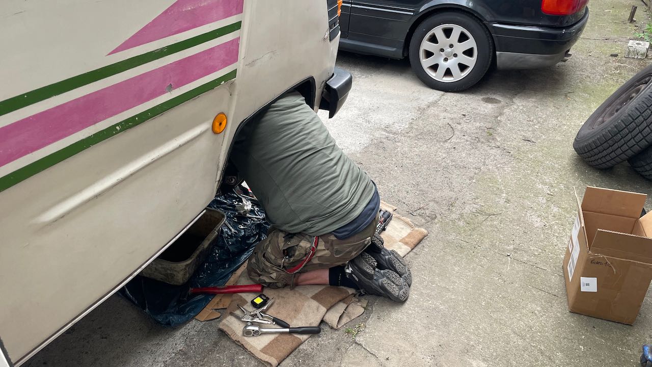 Am Ende ersetzt Martin alle Bremsleitungen. Alles neu.