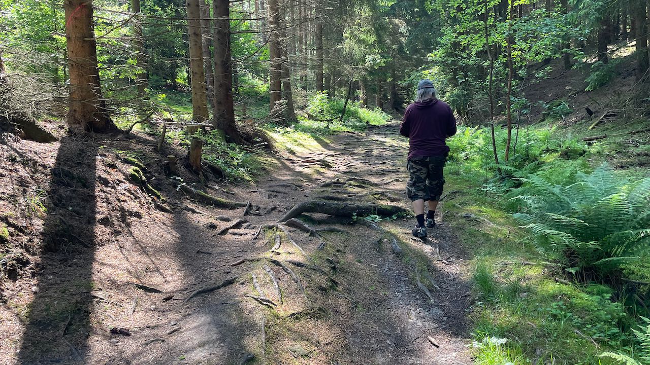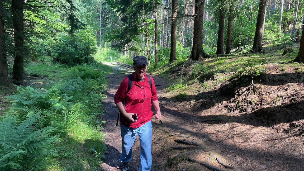 Nach einem Picknick nehmen wir einen anderen Weg durch den Wald zurück, Vogelzwitschern begleitet uns.