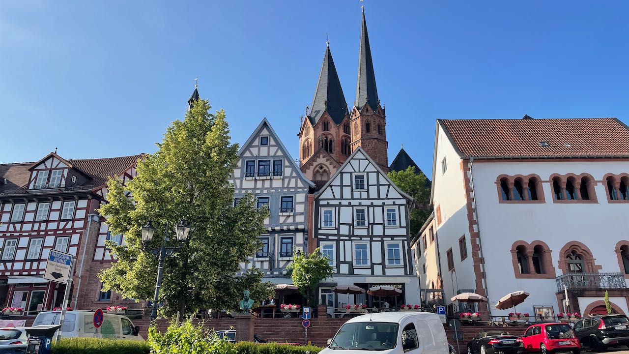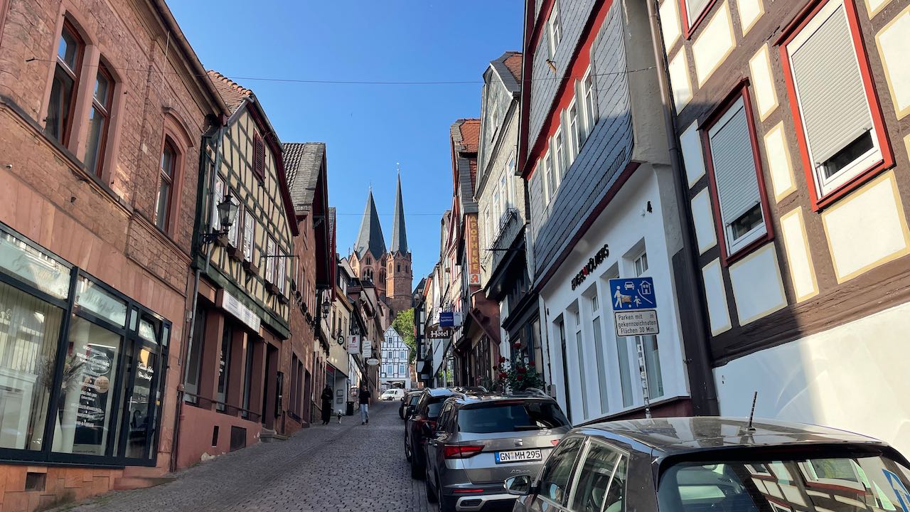 Spätnachmittags schlängeln wir uns durch die Gassen von Gelnhausen und finden einen sehr schönen Stellplatz an einer großen Wiese.