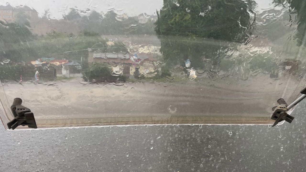 Der Himmel wird grauer und dunkler, in letzter Minute packen wir zusammen, bevor es lospladdert