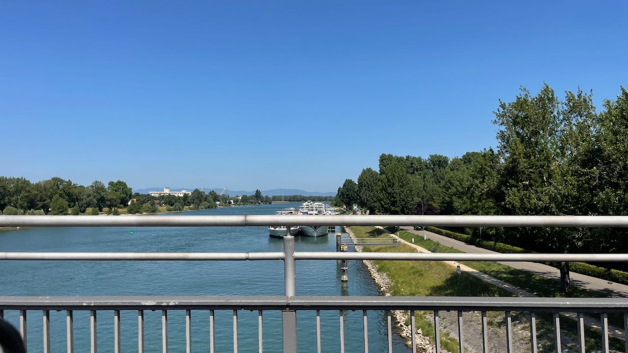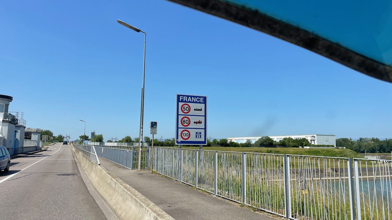 Diesel und Gas sind aufgefüllt, über die Rheinbrücke steuern wir nach Frankreich.