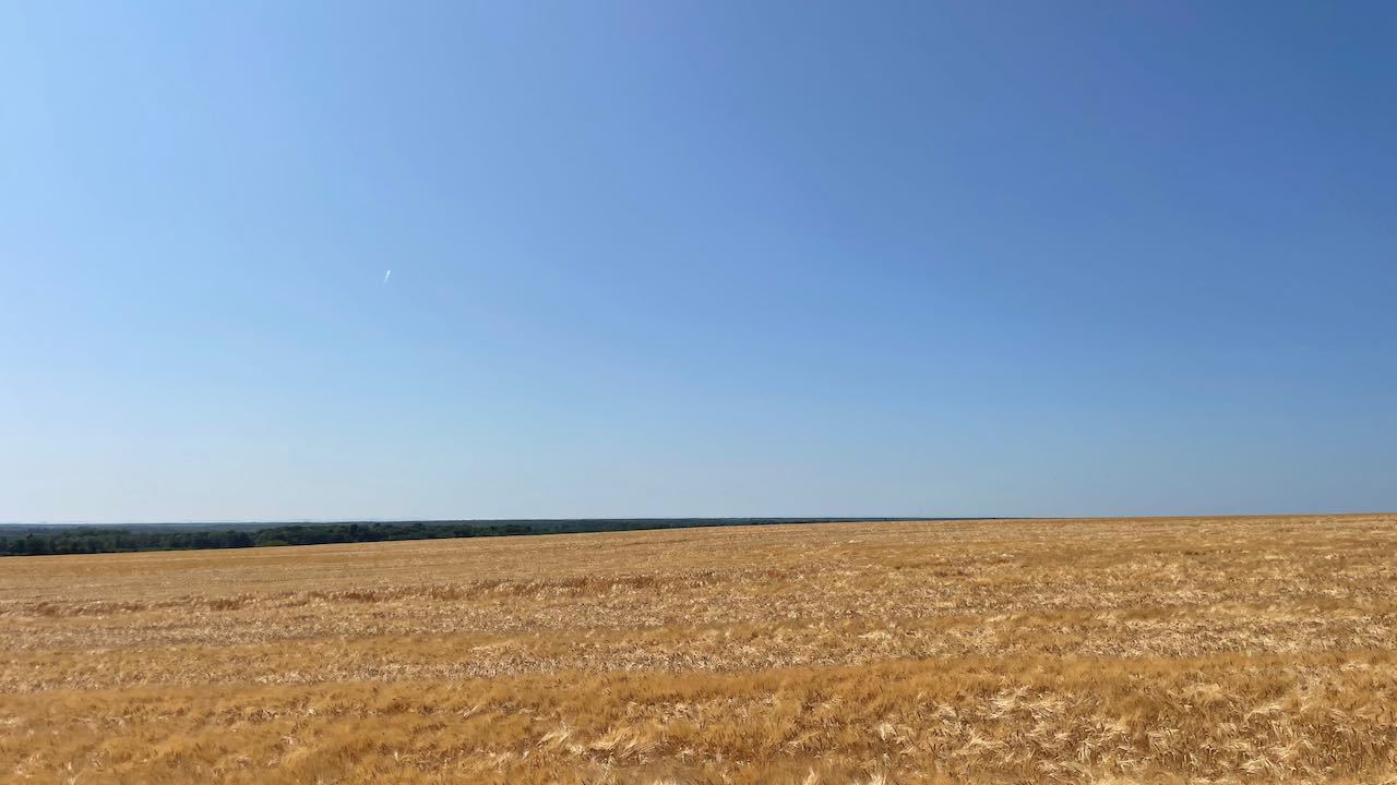 Durchs Elsaß, die Höfe wie mit der Zahnbürste geputzt. Über sonnengoldenen Kornfeldern flimmert die Hitze.