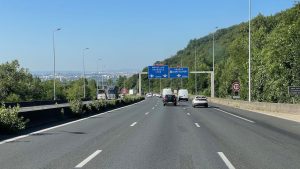 zur Autobahn. Strecke machen.