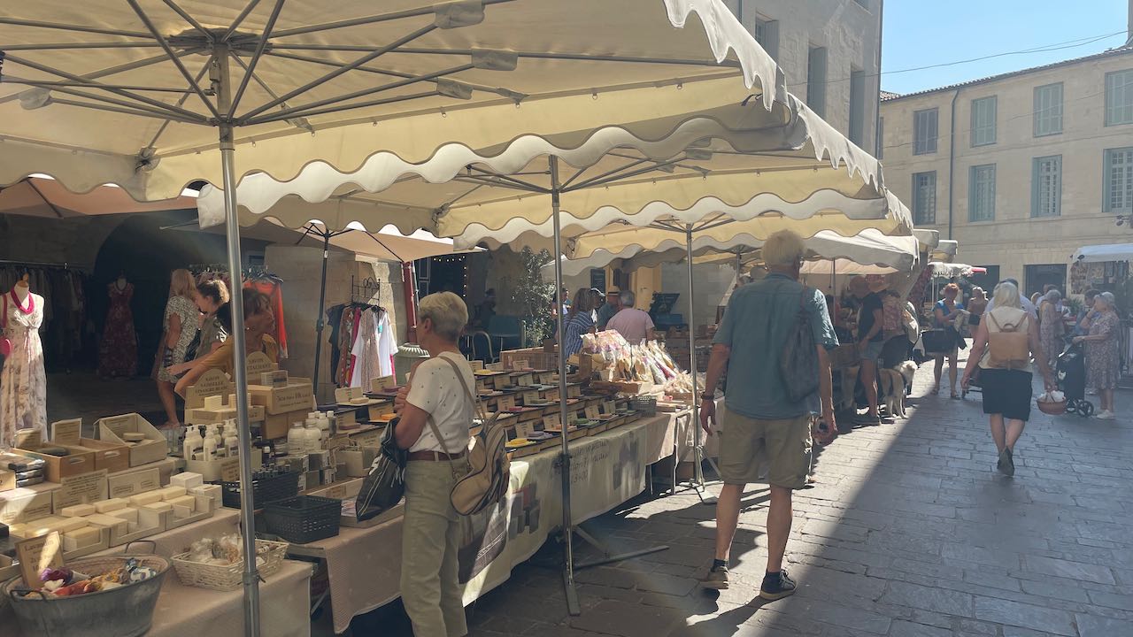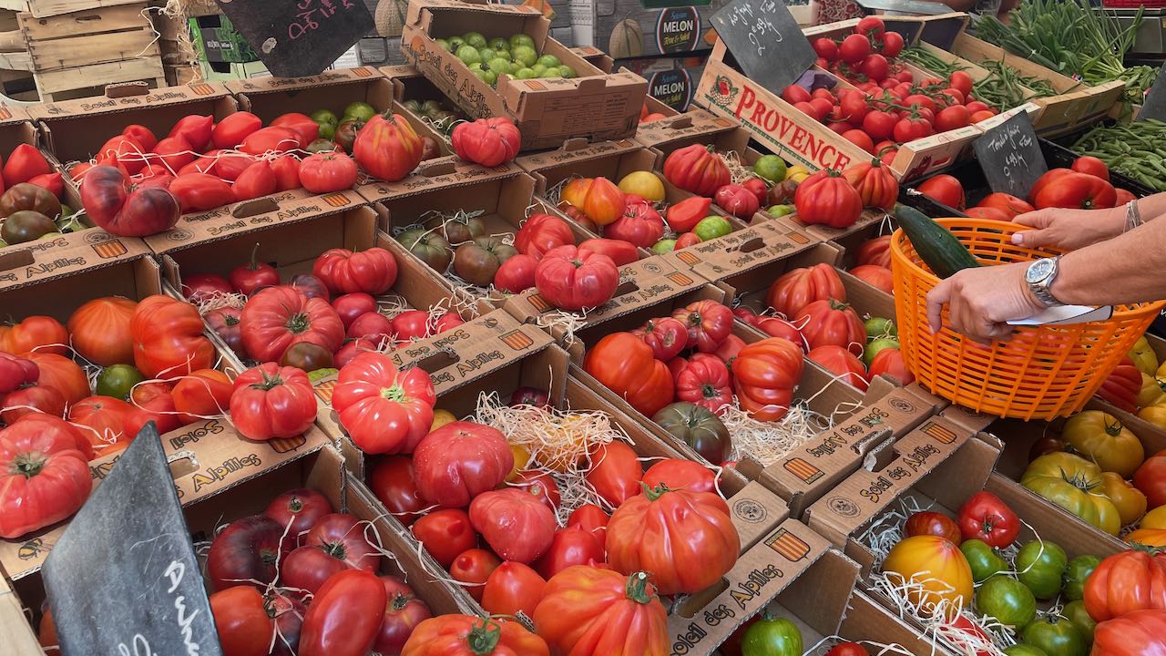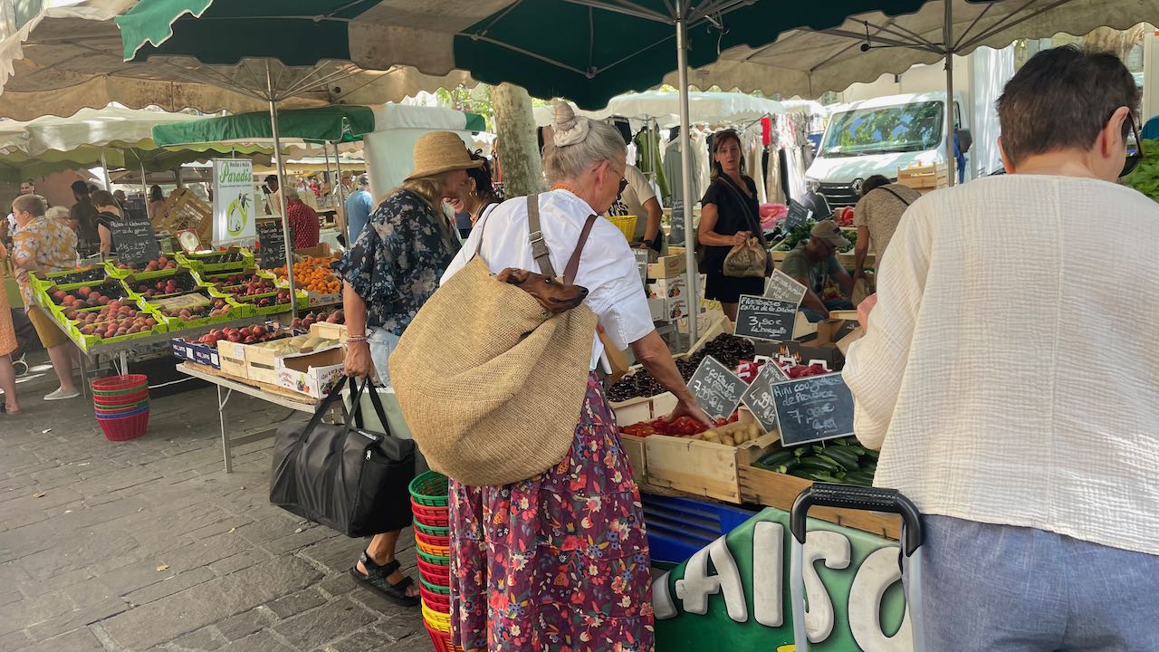 Wir kaufen Oliven und Tomaten, Käse und Baguette, Avocados und französische Seife