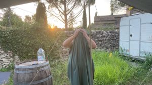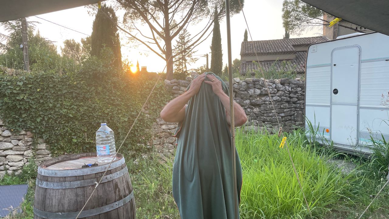 Abends übergießen wir uns mit kaltem Wasser, sehr erfrischend!