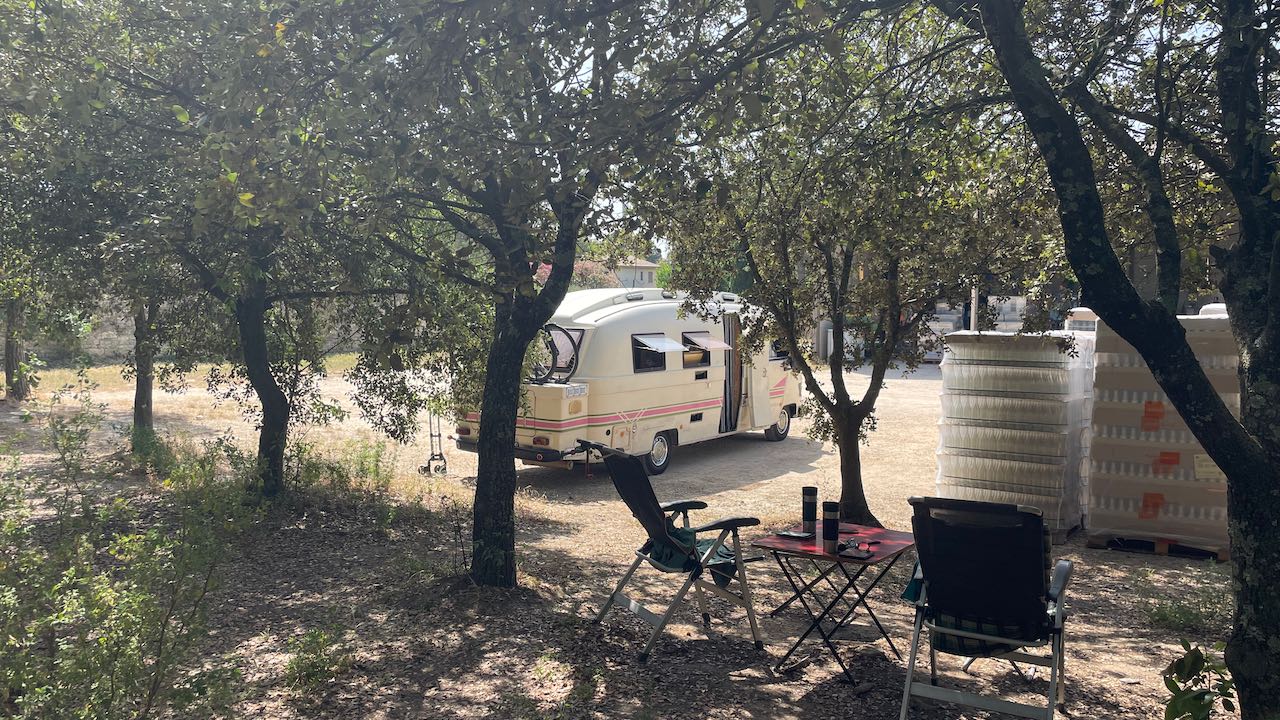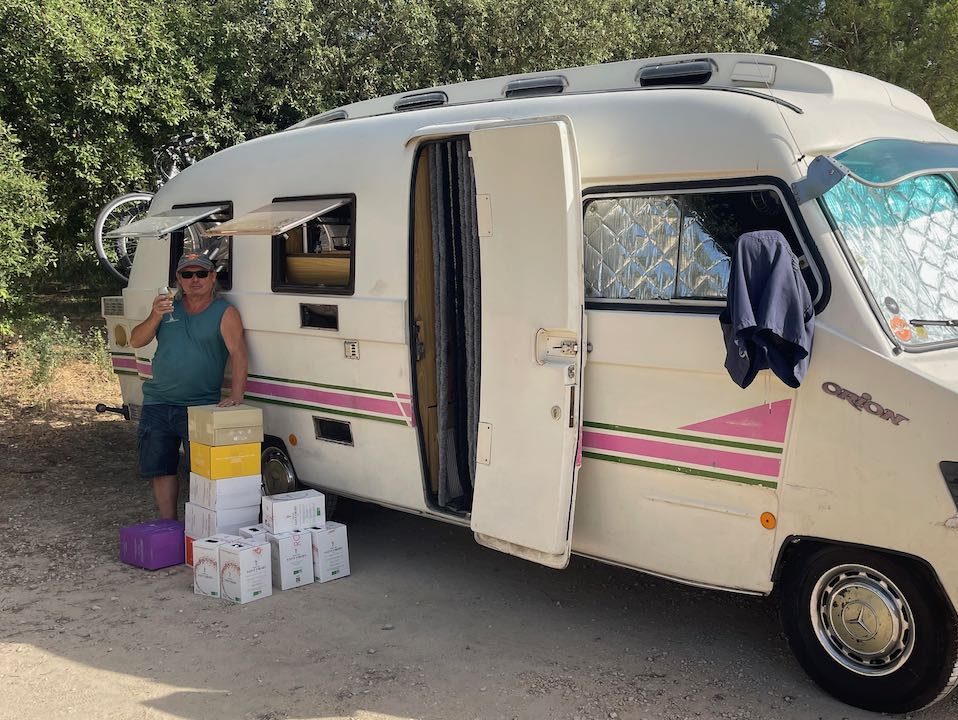 Auch hier staunen wir, daß der Stellplatz beim Weingut fast leer ist. Das haben wir so noch nie gesehen. Freie Platzwahl, prima!