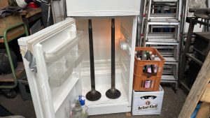 Schließlich treffen auch die passenden Achsenlager ein. Die Nacht vor dem Einbau verbringen die Achsen im Kühlschrank.