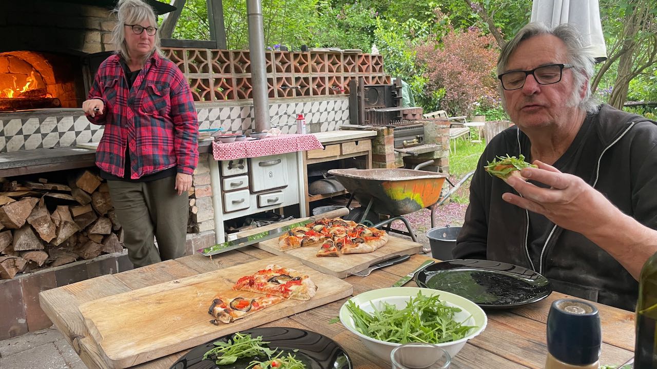 Wiedersehen mit der Familie in der Uckermark, der Pizzaofen glüht….die Pizza ist soooo lecker!