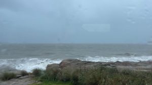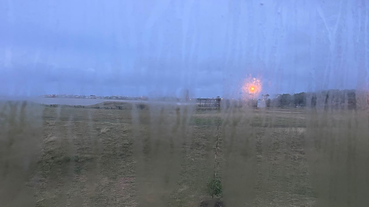 Ein trüber Nieselregentag mit stürmischem Wind.