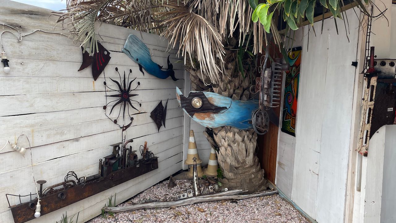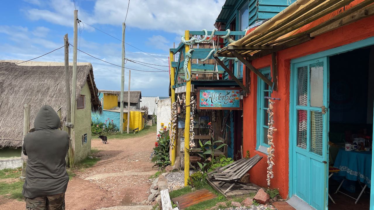 Was für ein Hippie – Kaff! Bunte, aus allem zusammengeschraubte Häuser, mit Liebe bemalt und dekoriert, große Klasse!