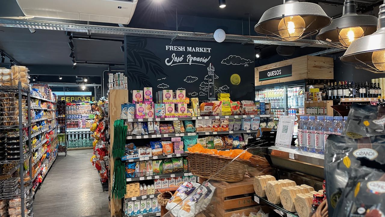 Hinter der Tankstelle befindet sich eine schöne, kleine Ladenzeile mit Supermercado, Bäcker und Weinladen. Teuer! Holla!