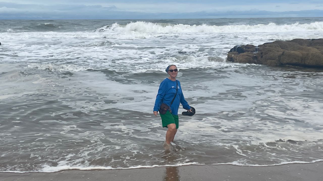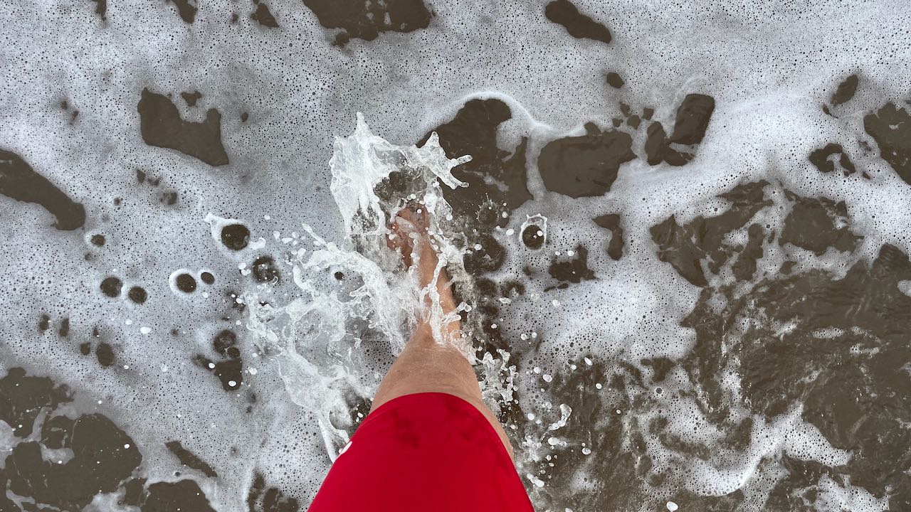 Das Wasser ist kühl, aber immer noch angenehm. Wellen schnappen nach meinen Hosenbeinen.