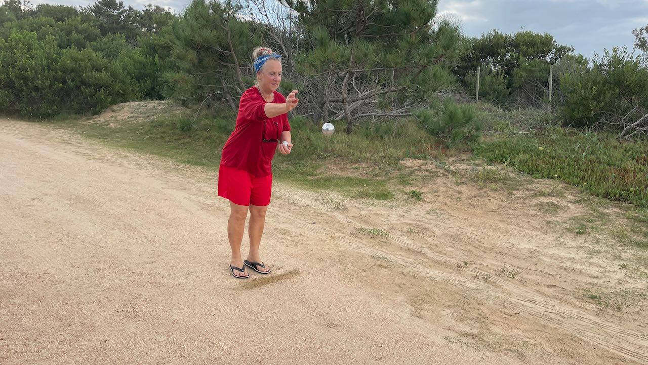 Nachmittags am Strand und auf kleinen Wegen durchs Dorf, später ein Petanquespiel vor der Rappelkiste