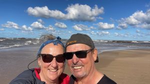 Erst am nächsten Nachmittag lassen Wind und Regen nach. Ein Spaziergang am Strand, aber bald kämpfen wir uns wieder durch Sturmwind und Regen und werden patschnass.