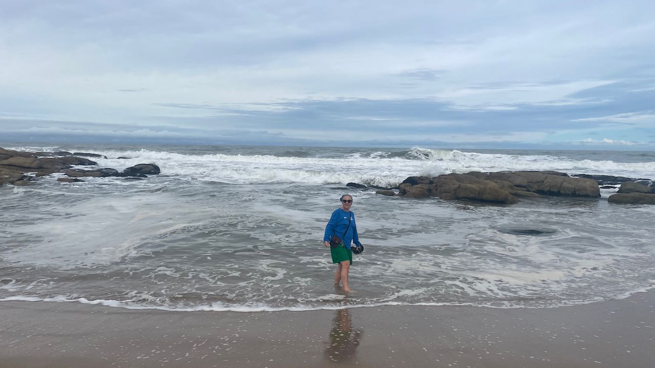 Hurra! Besseres Wetter! Schnell raus zum Strandspaziergang!