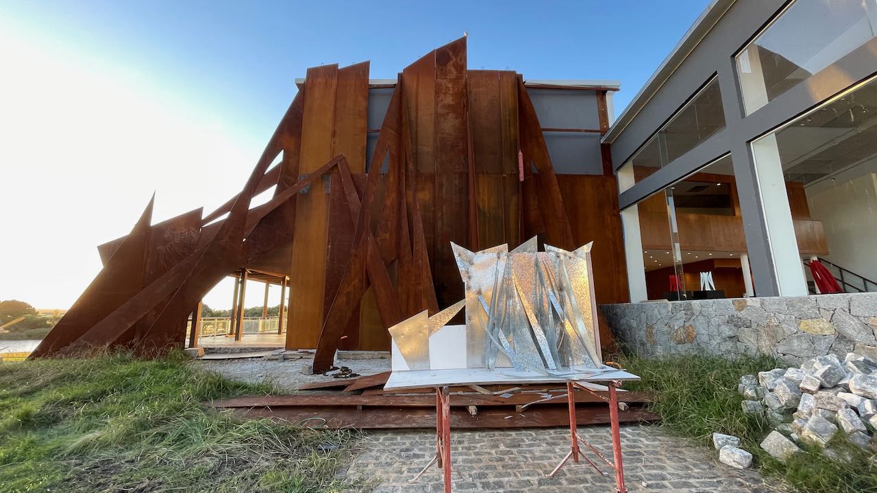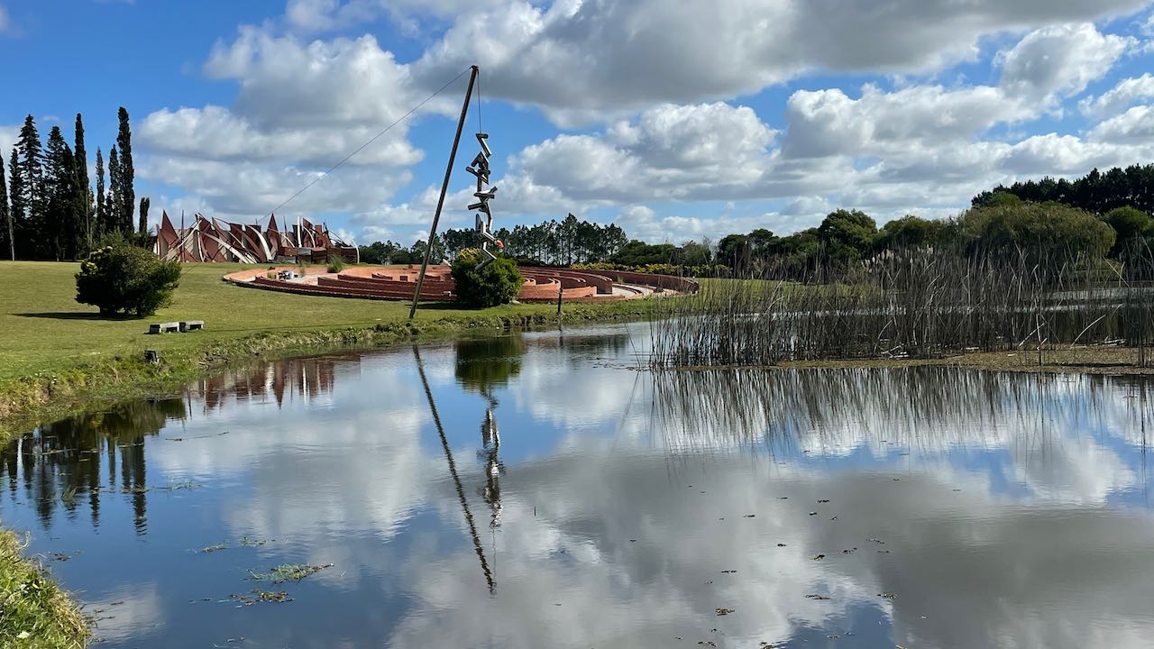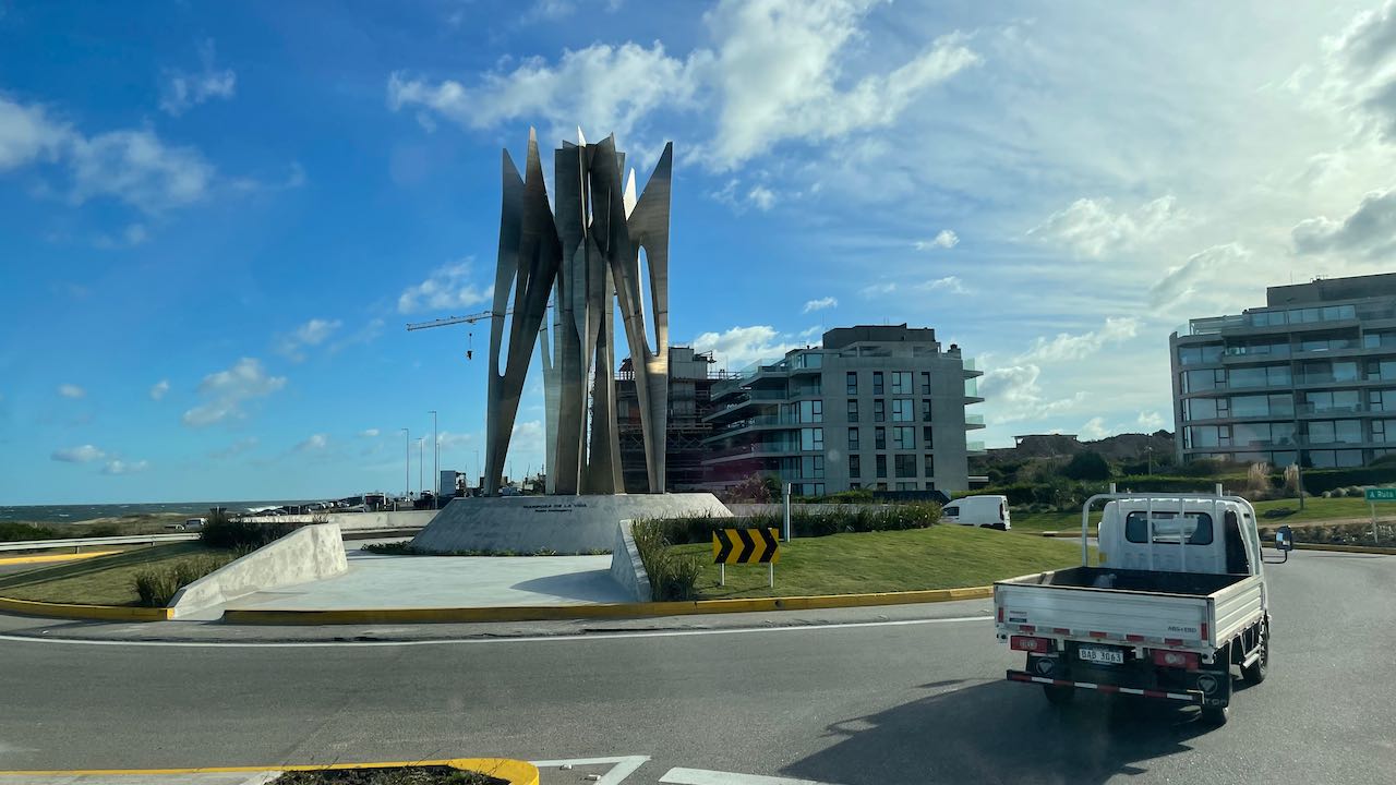 Wir möchten zum Museo von Pablo Atchugarry. Auf dem Kreisel in El Chorro sehen wir schon eines seiner Werke: silbern glänzende Zacken streben gen Himmel – aufgestellt wie zum Tanz