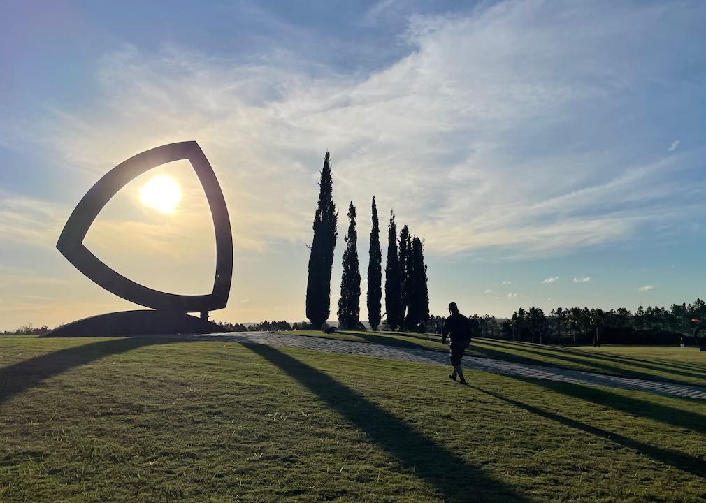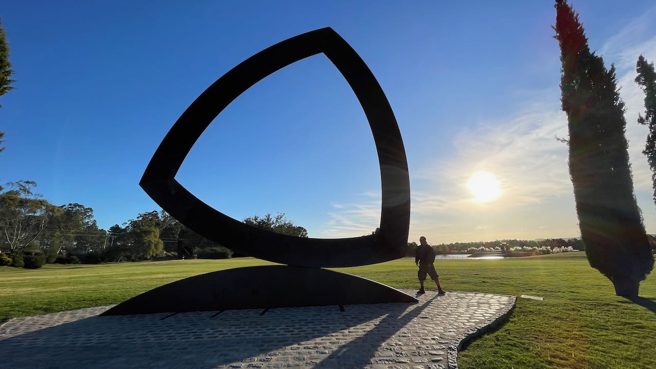 Diese hier erinnert an einen Wankelmotor, schwungvoll und exakt ausbalanciert. Wir haben Glück, spätnachmittags durch den Park zu wandern. Die Sonne steht tief und schafft durch die langen Schatten eine ganz besondere Atmosphäre