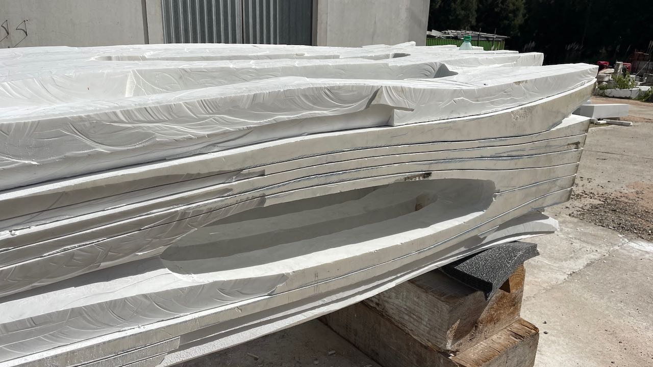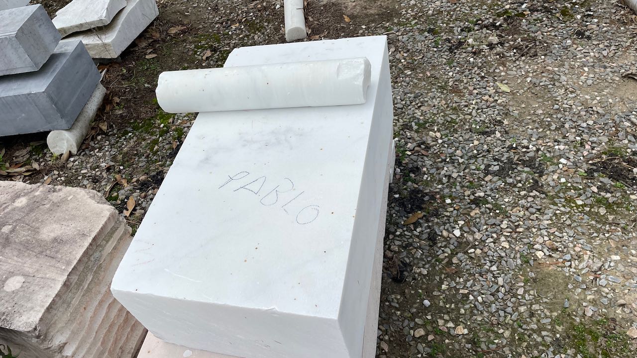Zuerst zum Atelier. Vor dem Haus liegen Marmorblöcke in Bearbeitung